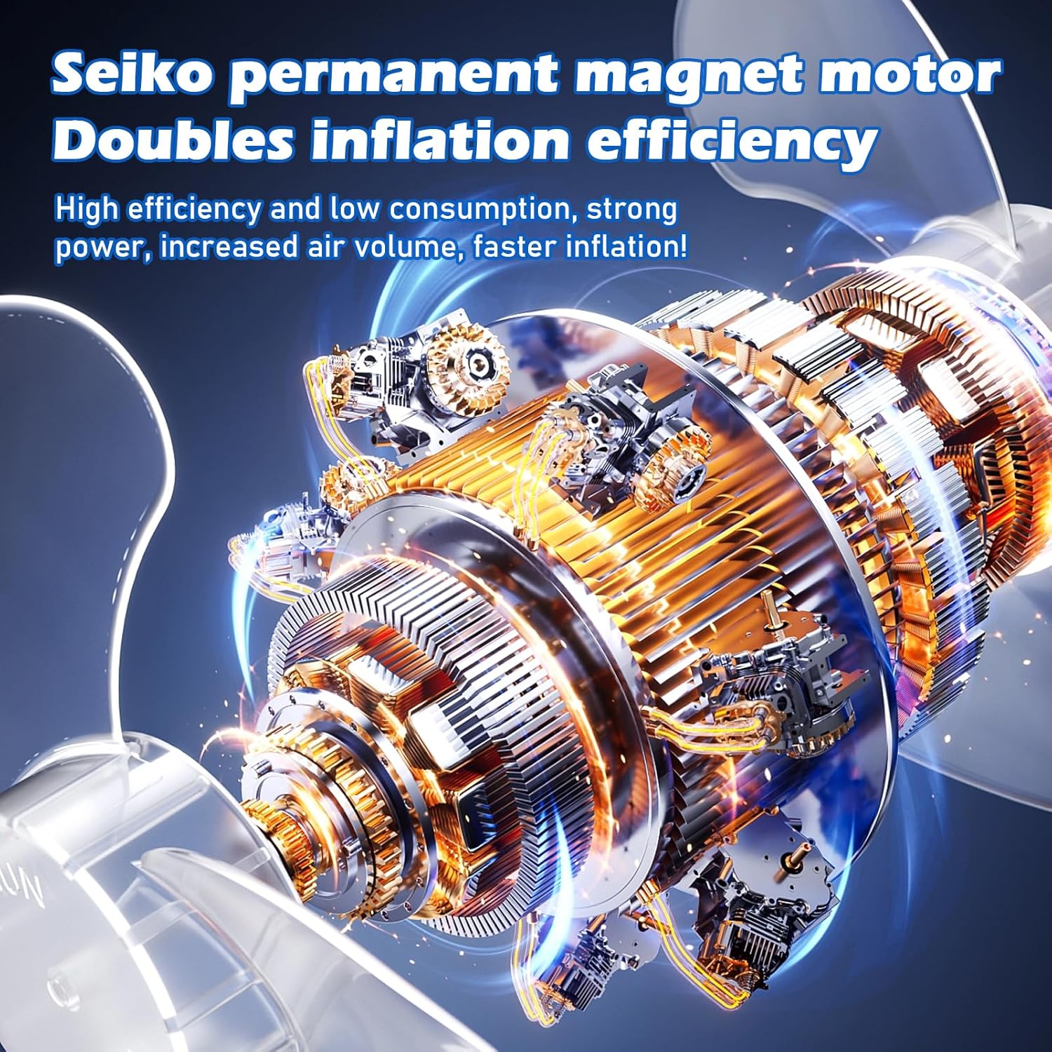 - 1. Ultra-Fast Inflation Performance This portable tire inflator for car, bike, and motorcycle tires delivers 3x faster inflation with a 35L/min airflow and 150 PSI max pressure. Achieve rapid results: Inflate a 195/65R15 car tire from 29 PSI to 35 PSI in under 2 minutes. Ideal for emergency use or routine maintenance across vehicles.
