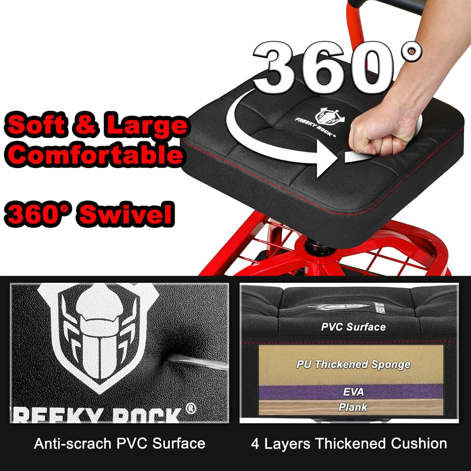 - 【330 LBS & 360°Swivel】The heavy duty mechanic workbench stool 's maximum weight capacity of around 330 pounds. It is an ideal choice for garage,workshop, auto repair and other places. The flexible 360° rotating seat and casters ensures efficient and agile movement between work areas.