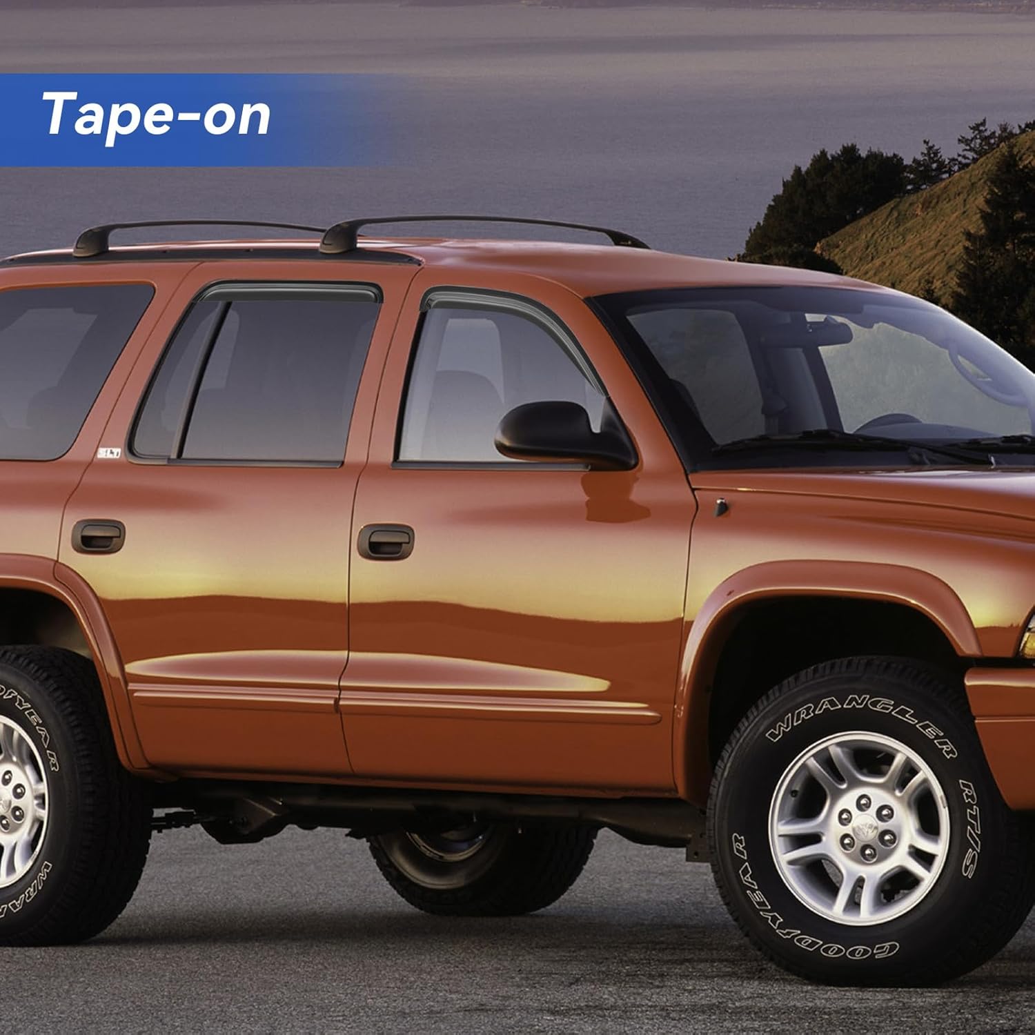 - 【Perfect Fit】YQAUTEC 4Pcs Out-Channel/Outside Adhensive Window Visors Rain Guards Shield fit for 1998 1999 2000 2001 2002 2003 Dodge Durango, Side Window Vent Wind Deflectors Visors Shades for 98 99 00 01 02 03 Dodge Durango.
