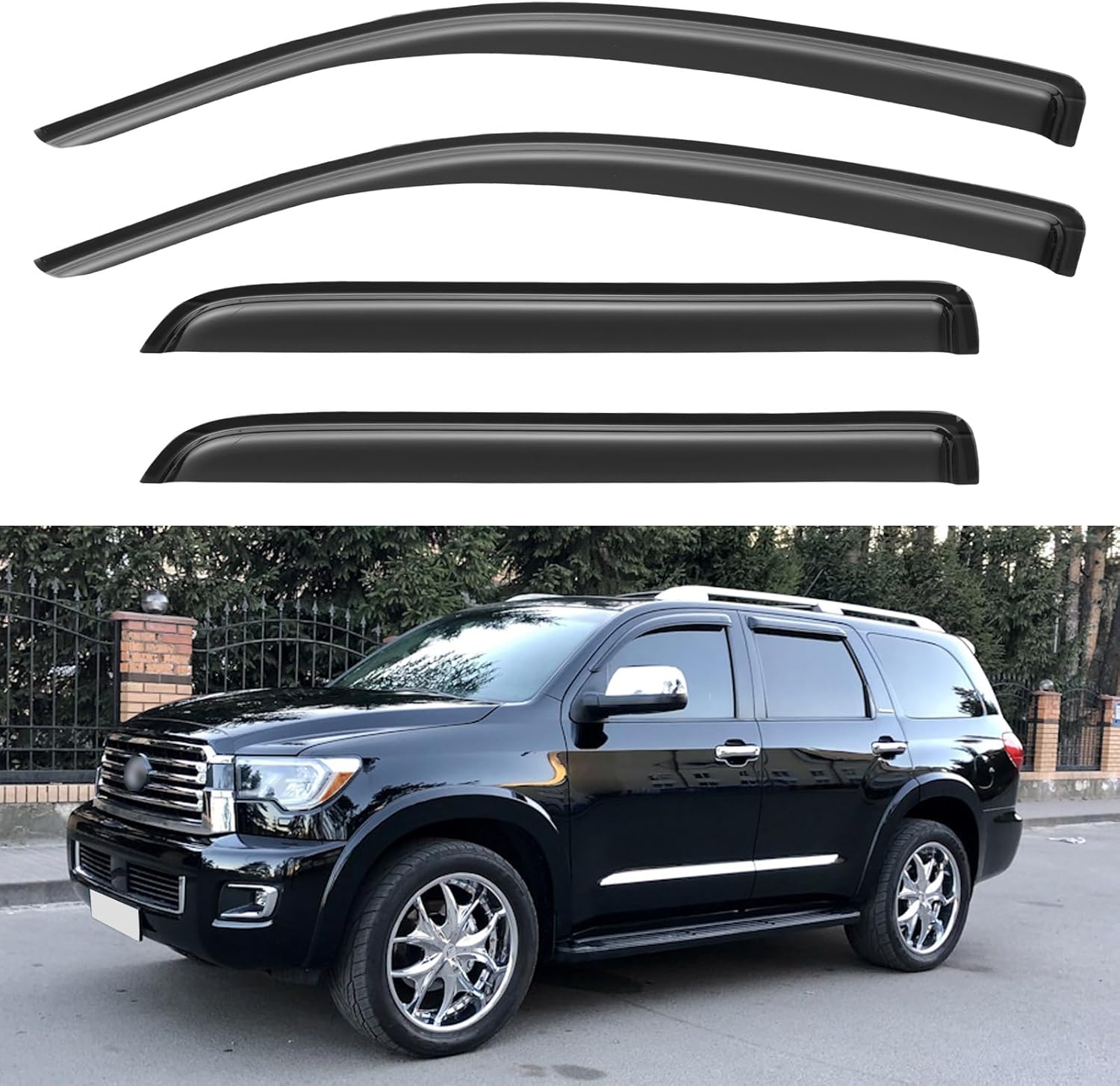 - 【Perfect Fit】YQAUTEC 4Pcs Out-Channel Window Visors Rain Guards Shield fit for 2008 2009 2010 2011 2012 2013 2014 2015 2016 2017 2018 2019 2020 2021 2022 Toyota Sequoia, Side Window Vent Wind Deflectors Visors Shades.