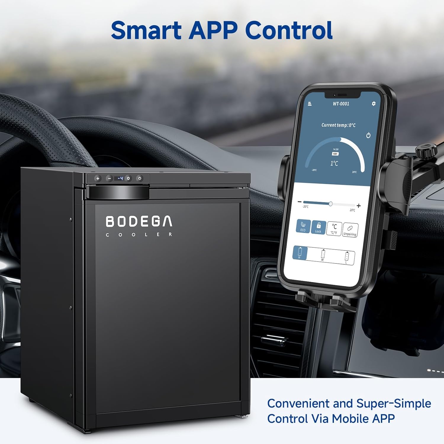 - Rapid Cooling & APP Control: BODEGACOOLER 12 Volt RV fridge supports both manual control and smart APP control (iOS/Android). You can check or set the temperature, voltage, cooling mode and more using the APP. Equipped with powerful compressor technology, it achieves freezing temperatures as low as -4°F (-20°C), with an adjustable range from -4°F to 46°F (-20°C to 8°C) to accommodate both refrigeration and freezing needs. Let this compact travel refrigerator companion enhance every journey.