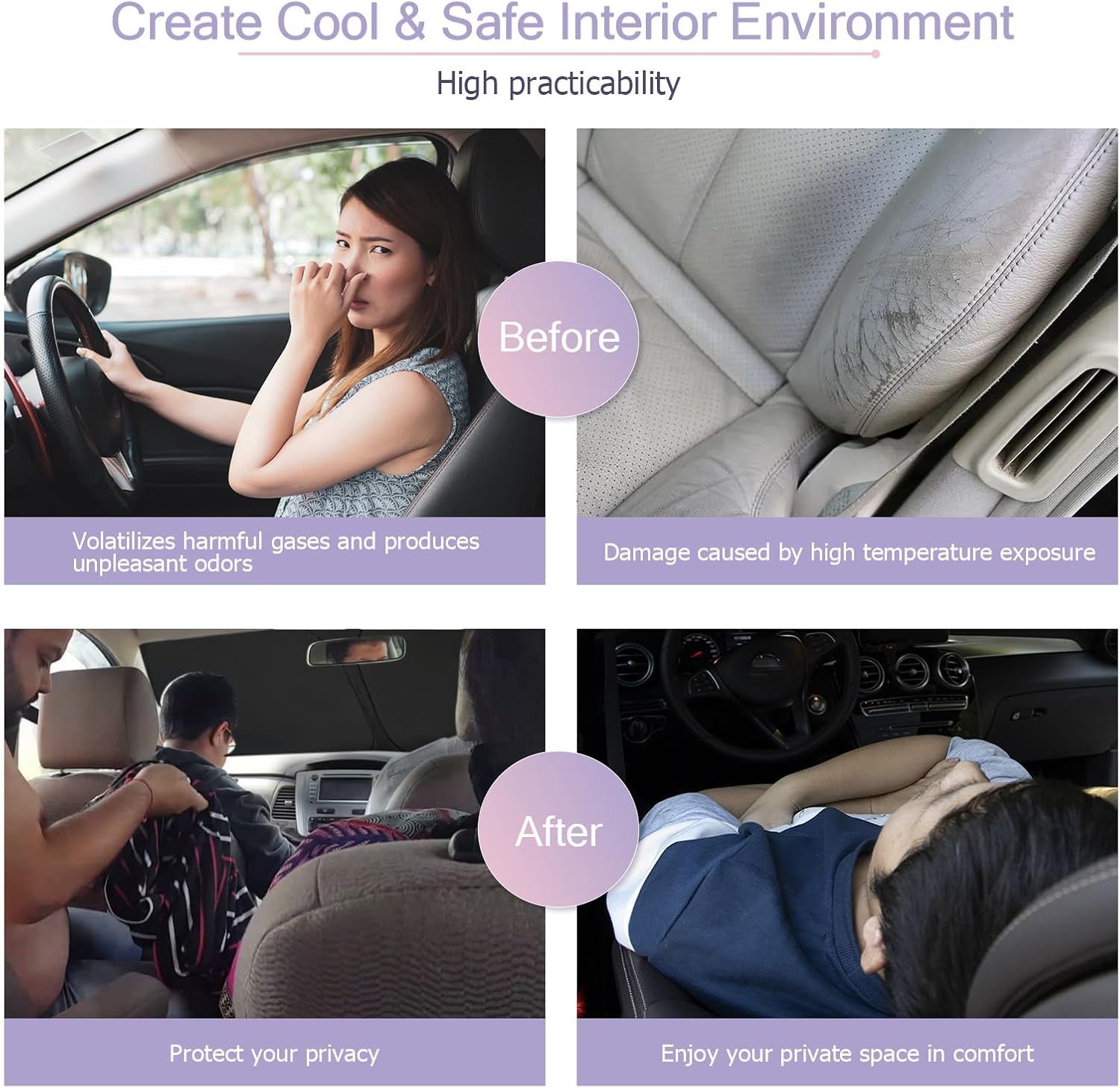 - 【Easy to Fold】We have a lightweight fold-able window shade design. Unlike other hard-to-fold sunshades on the market, this windshield shade can be easily folded in seconds, making it very convenient for everyday use. You can easily tuck the car windshield sun shade into the car door side pocket, rear seat or trunk storage when not in use