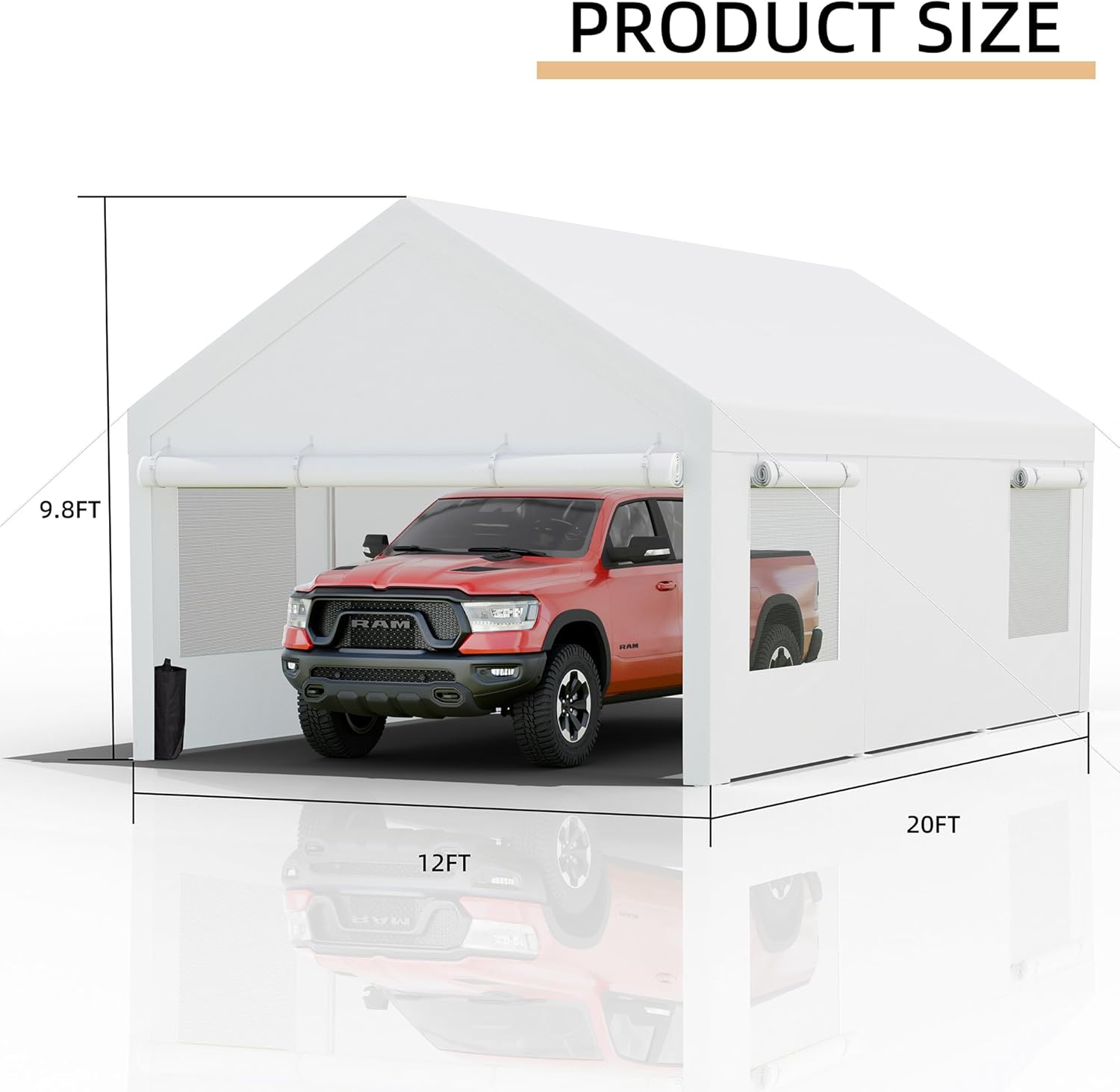 - 【Removable Sidewall Windows and Doors】This carport comes with 2 removable sidewalls, 2 front and rear facing doors, and 4 roll-up ventilation windows for air circulation. You can roll the doors up or down as needed, or remove all the sidewalls and doors and leave only the canopy cover for outdoor activities.