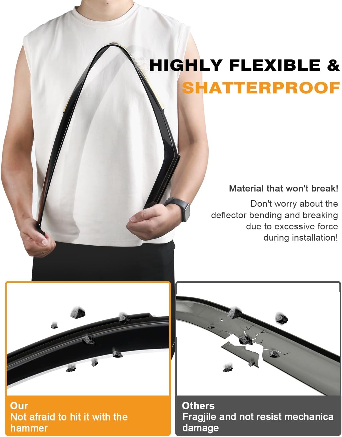 - 【Extra-Durable Polycarbonate】Deejecsun Window Deflectors made of long-lasting shatterproof material, offer ultimate protection against heat, wind, rain, and environmental damage, ensuring a safe and comfortable journey .