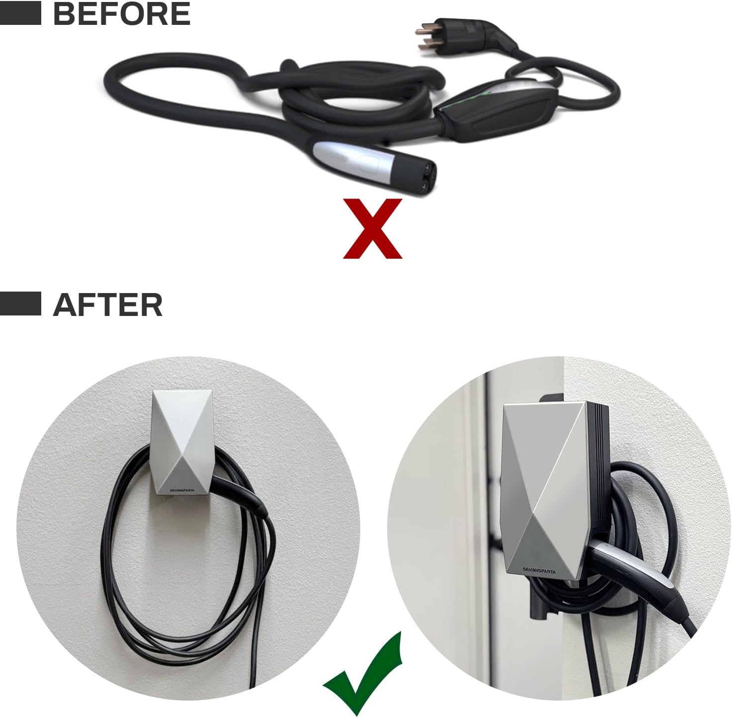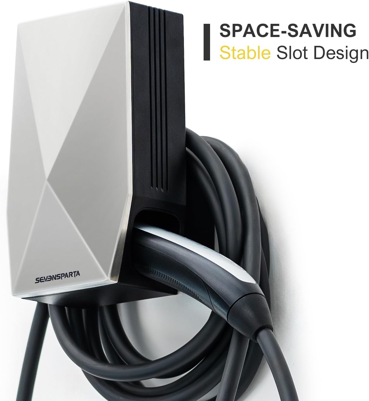 - UPGRADED CABLE ORGANIZER:Seven Sparta charging cable holder features a durable aluminum plate and sleek cyber-style design. Includes side storage for your charging adapter, optimizing garage space.
