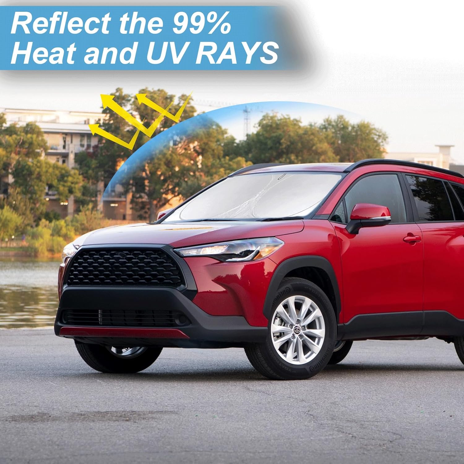 - [CUSTOM-FIT FRONT WINDSHIELD SUNSHADE] Automotive windshield sun shade is Specifically designed,which for 2022-2026 Toyota Corolla Cross (Not fit Corolla Sedan) Front Window Shield Cover accessories. We have several size of car sunshade. Please measure your car size and refer to our size before your purchase. Once installed it won't have gaps, sags or slumps like other car sun shade windshield