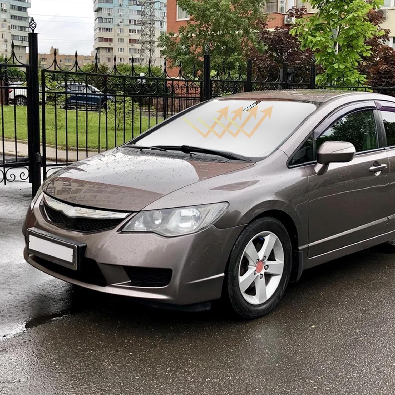- 【Vehicle Specific】Our Windshield Shade Cover custom fit Honda Civic 2006-2009 2010 2011 Accessories ,Full covered your windshield,No Gap,100% Perfect fit. The precise fit design and reinforced steel ring are sufficient to allow the sun shade to precisely fit the front window without the need for suction cups to hold it in place, effectively protecting your car from the sun's rays.