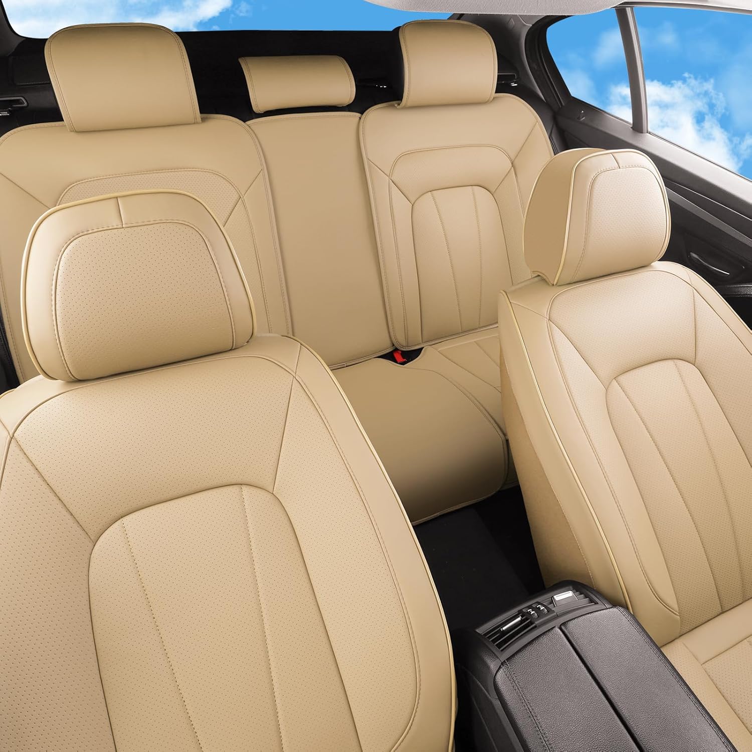 - 【UNIVERSAL FIT and QUICK INSTALLATION】:The leather seat covers are universal fit over 95% of vehicles, tailored to meet most specifications. They cover the seats without hindering the original functions. Please ensure compatibility with your vehicle model before buying.And they are the upgraded version on the market, which can be installed without any tools, and no need to lift or remove the rear seat The retainer ensures a tight fit with the seat so we can quick installation.