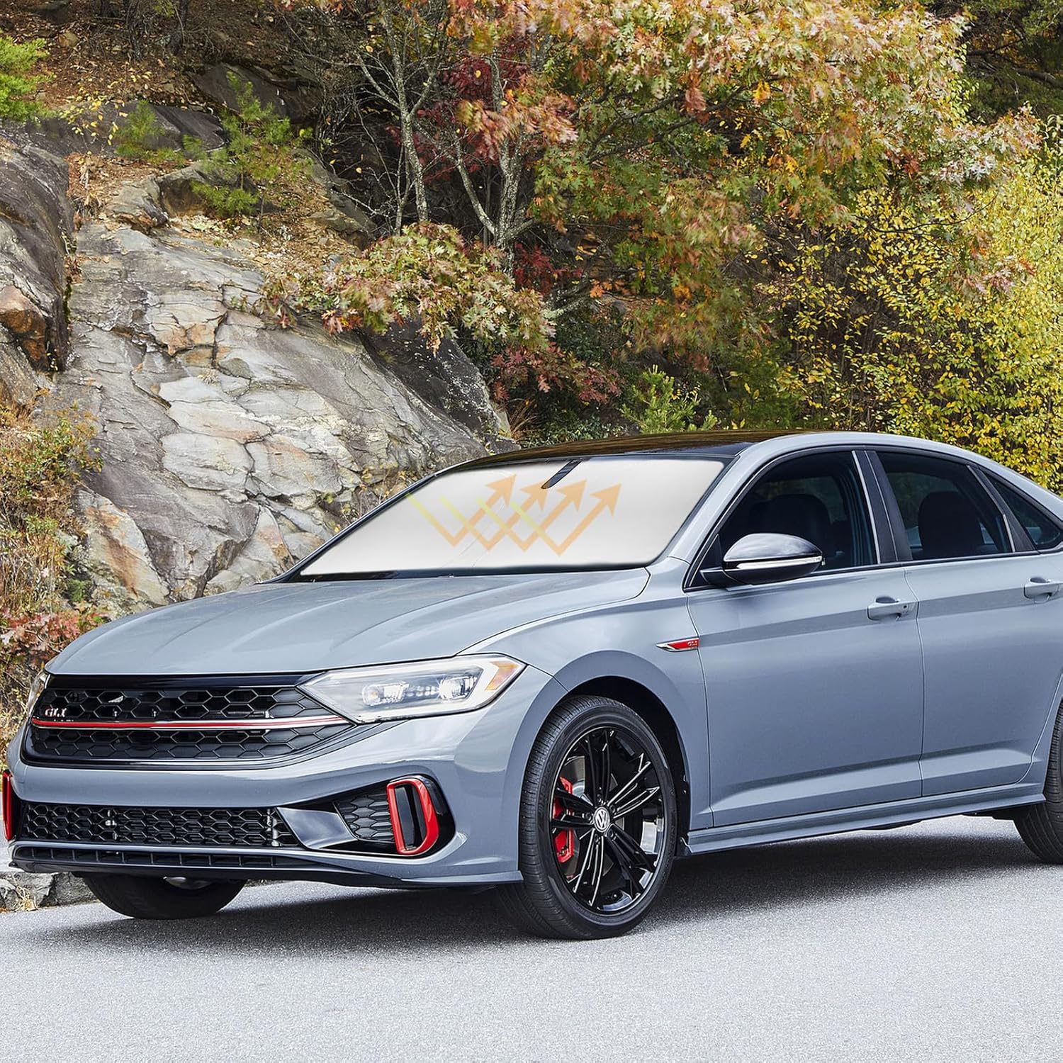 - 【Vehicle Specific】Our Windshield Shade Cover custom fit VW Jetta 2019-2023 2024 2025 2026 Car,No Gap,100% Perfect fit. The precise fit design and reinforced steel ring are sufficient to allow the sun shade to precisely fit the front window without the need for suction cups to hold it in place, effectively protecting your car from the sun's rays.