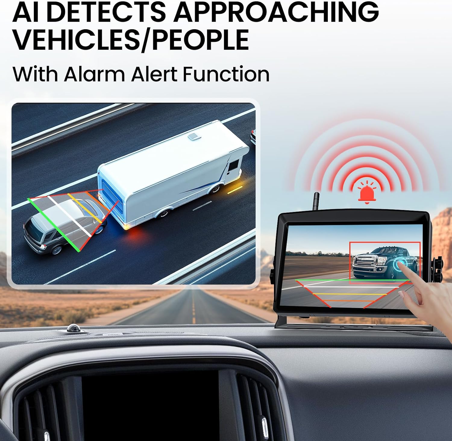 - AI Detection with Real-Time Alerts: Our vehicle backup cameras keep you safe with advanced AI technology that instantly detects pedestrians, vehicles, and obstacles. Get real-time alerts to stay informed and in control, whether you're reversing or driving. Drive smarter, safer, and with confidence—every time.