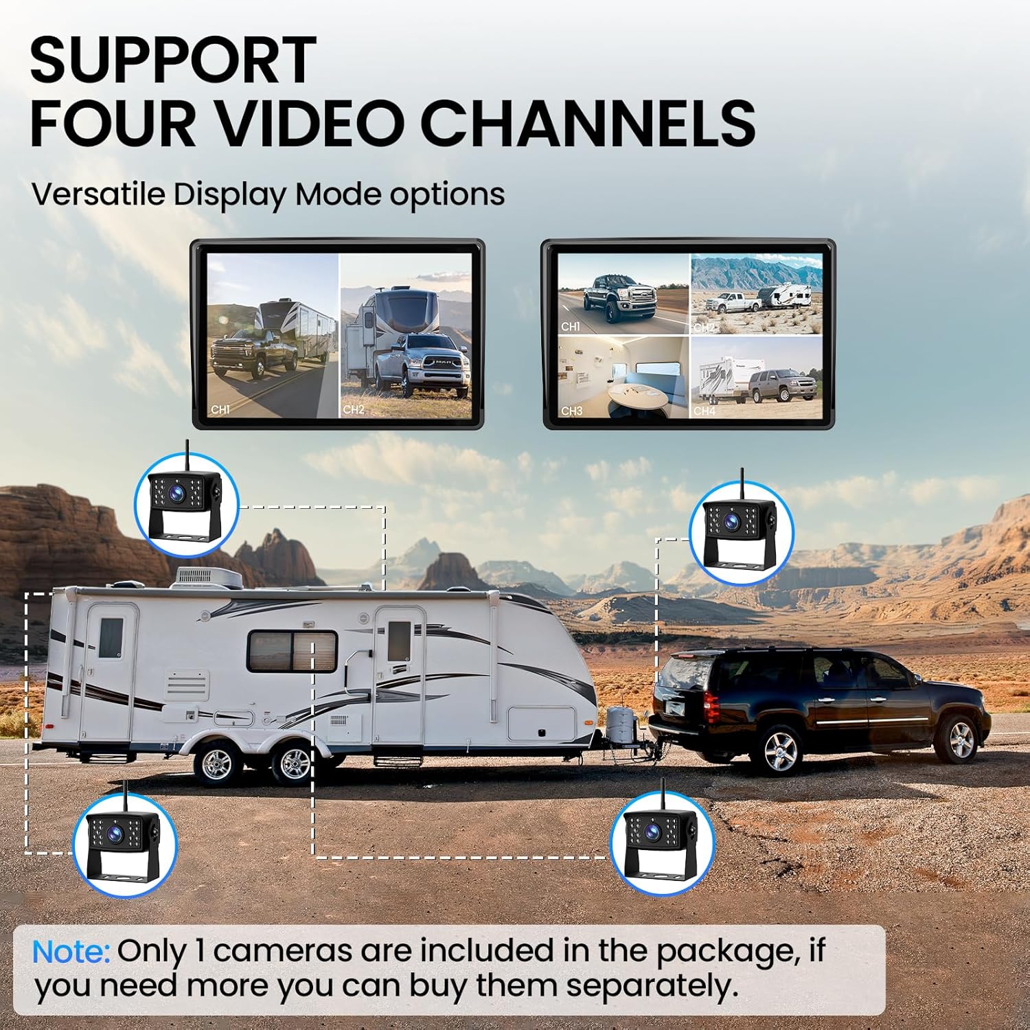 - Expandable with 4 Channels: Connect up to 4 cameras to the HD 1080P monitor effortlessly. Easily switch between cameras and enjoy a wide viewing angle, 18 infrared lights, and crystal-clear images for complete visibility day or night.