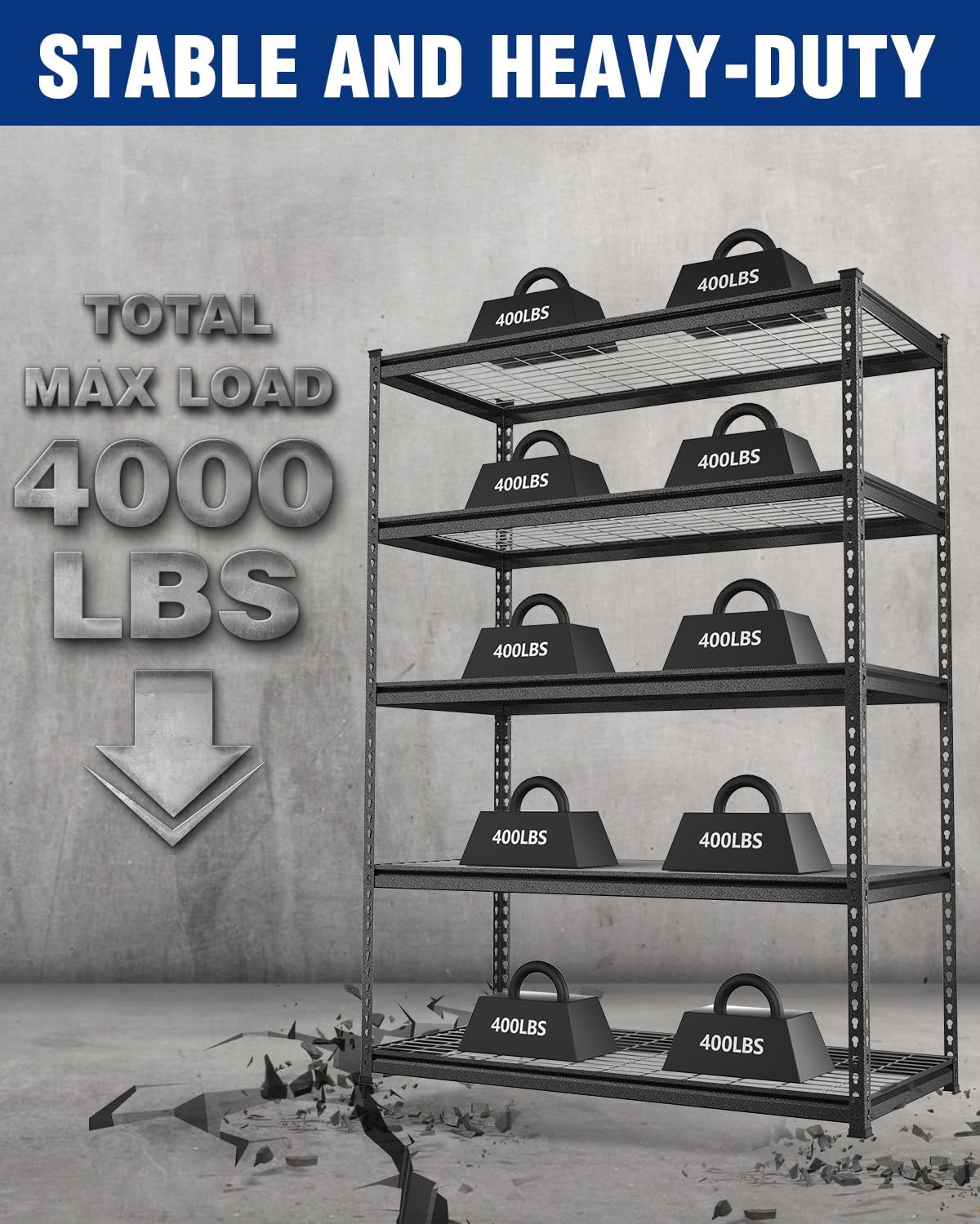 WORKPRO 5-Layer Heavy Duty Metal Storage Rack, 48”W x 24”D x 72”H, Adjustable Shelving Unit with 4000 lbs Total Load Capacity, for Garage, Kitchen, Bathroom, Warehouse