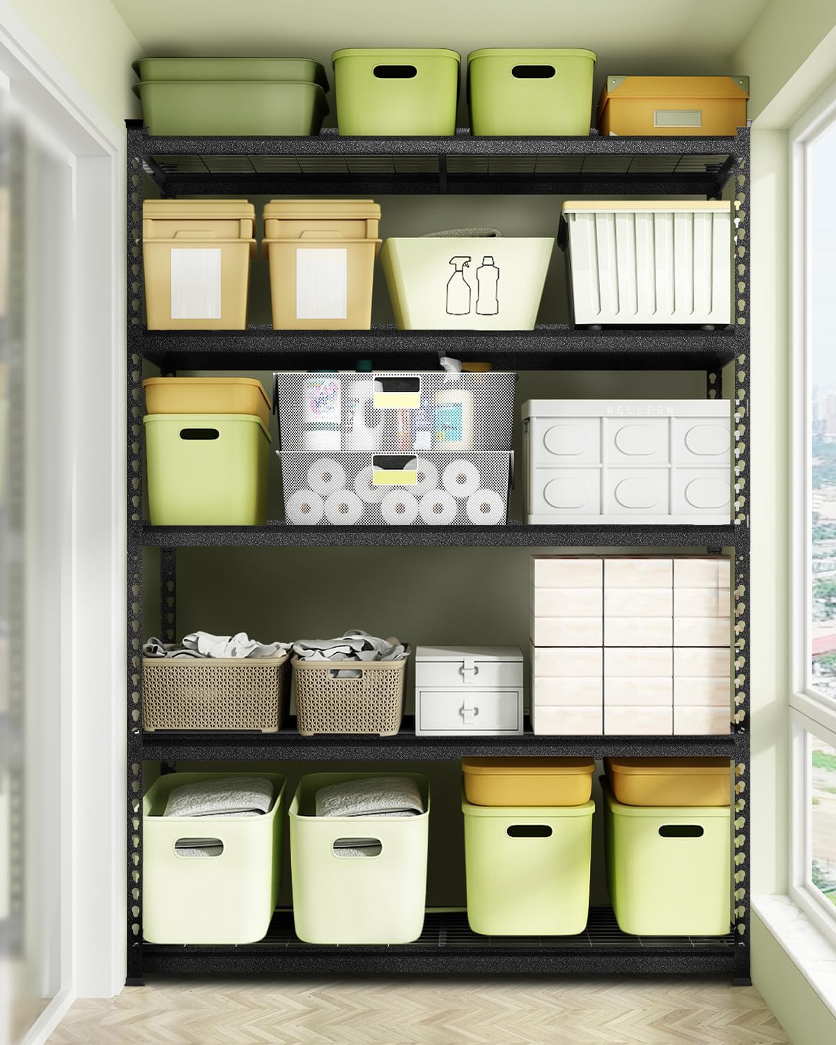 - Durable, Rust-Resistant Construction: Built with corrosion-resistant materials, this shelving unit is designed to withstand humid or harsh conditions, ensuring long-term use in garages, basements, or outdoor storage areas. The polished black and silver coating adds a sleek, modern appearance while preventing rust, scratches, and wear, ensuring the unit stays both functional and stylish over time.