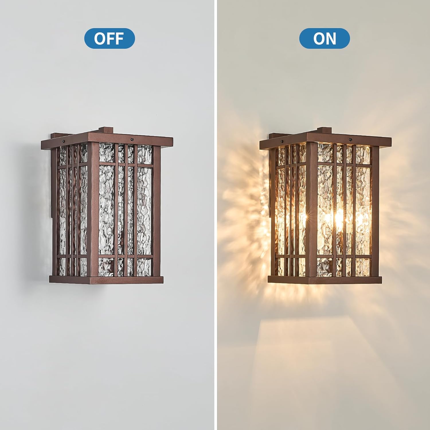 - ELEGANT STYLE: Outdoor wall lanterns design featuring vertical metal bars and textured glass panels creates beautiful light patterns and adds sophistication to any space