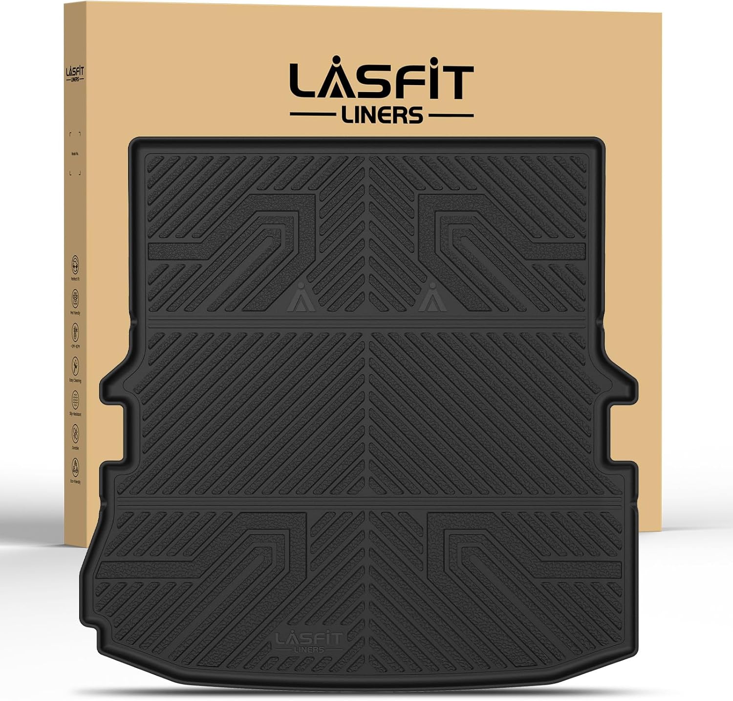 - 【Full-Coverage Protection】LASFIT floor mats carefully consider coverage during the real car data scanning process to ensure all-around protection for your vehicle. Whether your third-row seats are folded or upright, the mats precisely cover every corner of the trunk and seatback , including contours, seatback areas, and seams