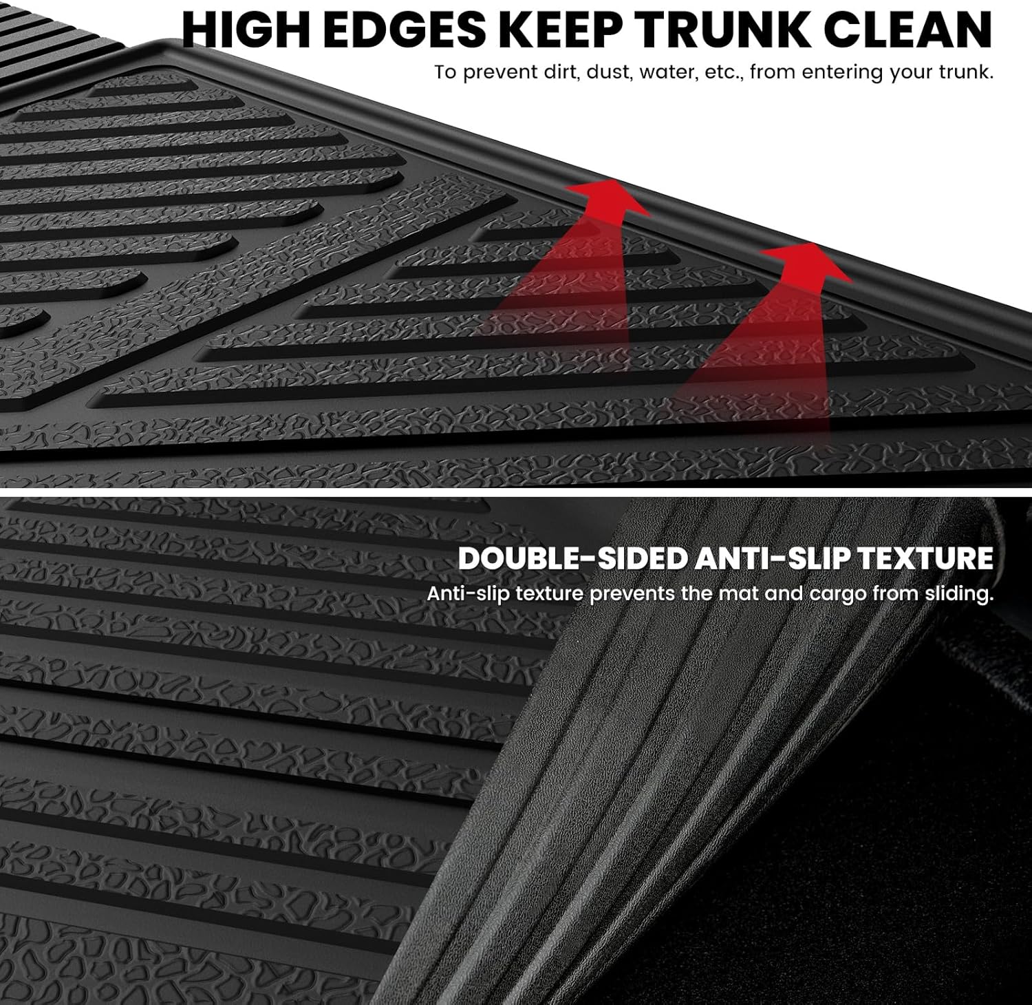 - 【All-Weather Protection】 : Whether transporting daily essentials, work gear, outdoor equipment, or pets, the mats effectively guard against scratches and wear. The full-coverage design and raised lip edges prevent snow, water, mud, or sand from seeping through gaps, keeping your car looking brand new all year round. The strong Velcro and dual-sided anti-slip texture securely hold mats and items in place for worry-free use.
