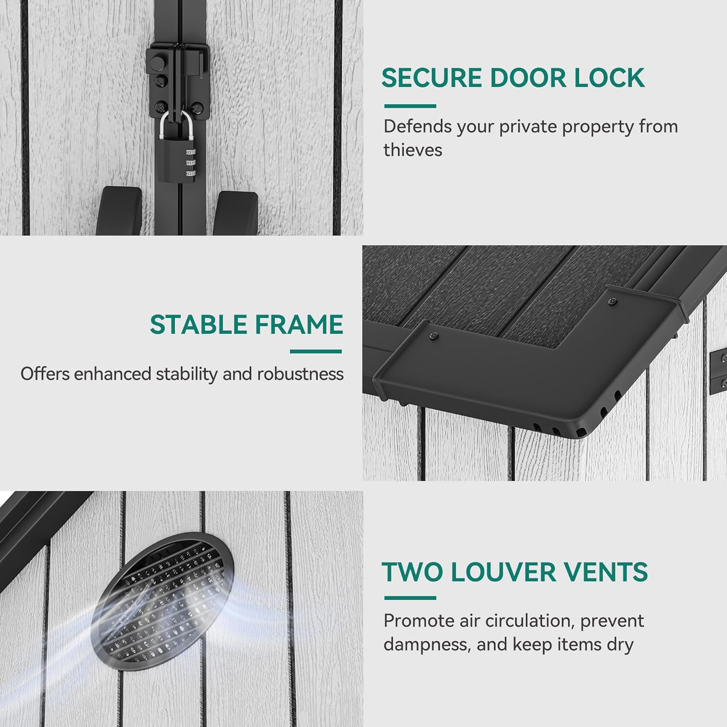 - Reliable Protection: Keep your items safe with a lockable, waterproof design that guards against theft and weather; Our large resin shed provides peace of mind for long-term storage