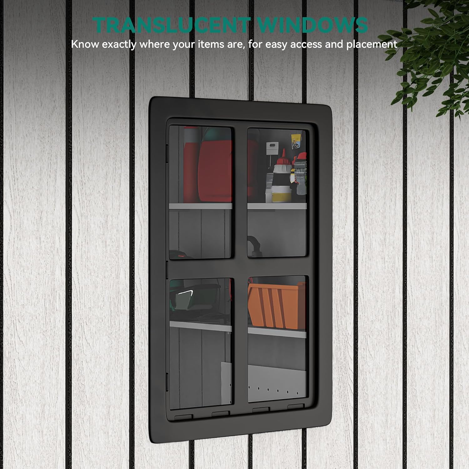 - Well-Lit and Ventilated: Enjoy a bright and airy plastic shed with ventilation holes and a semi-transparent window, great for maintaining a fresh environment; Double doors offer convenient access