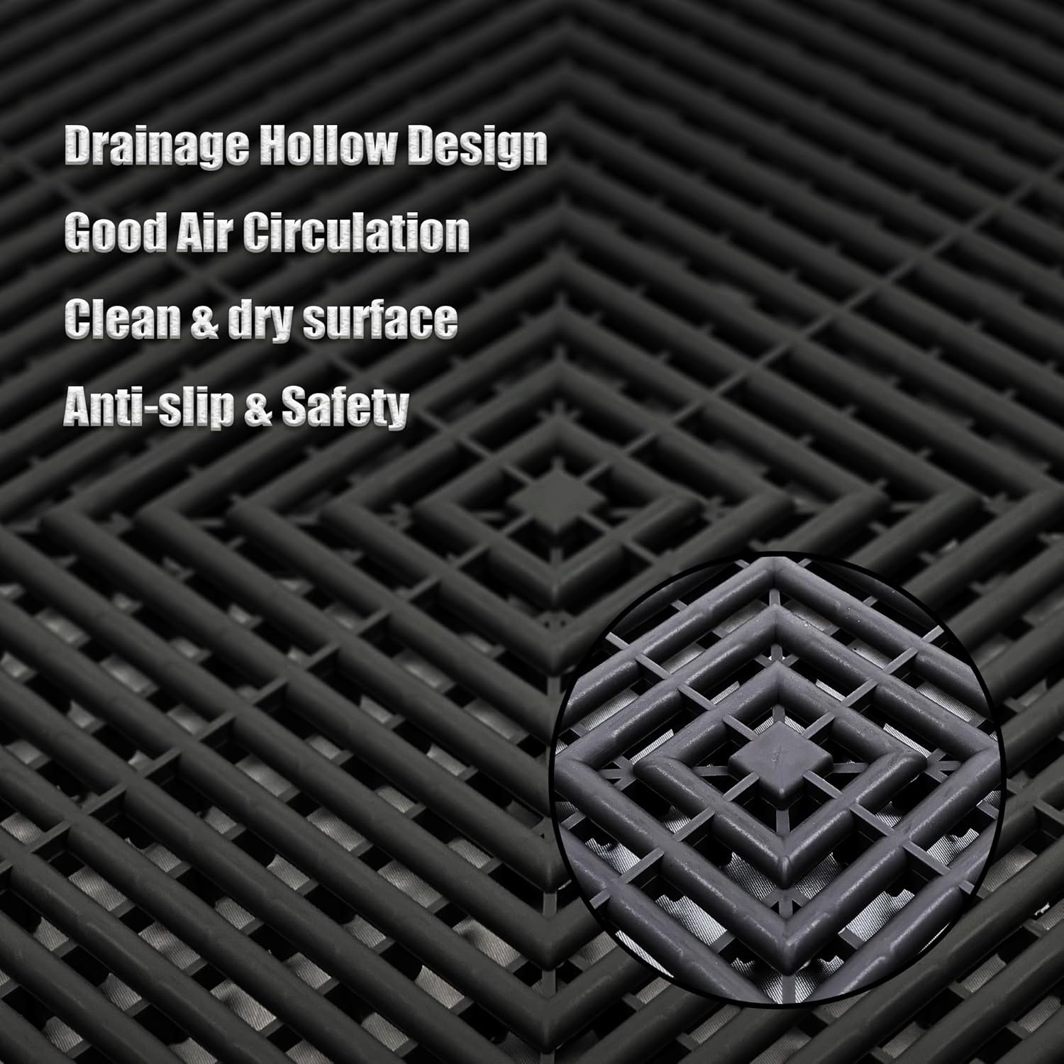 12 Pack 16"x 16"Interlocking Garage Floor Tiles,Modular Drainage Floor Mat,Non-Slip Splicing Interlocking Drain Mats Floor Tile for Garage Car Wash Basement(Black)