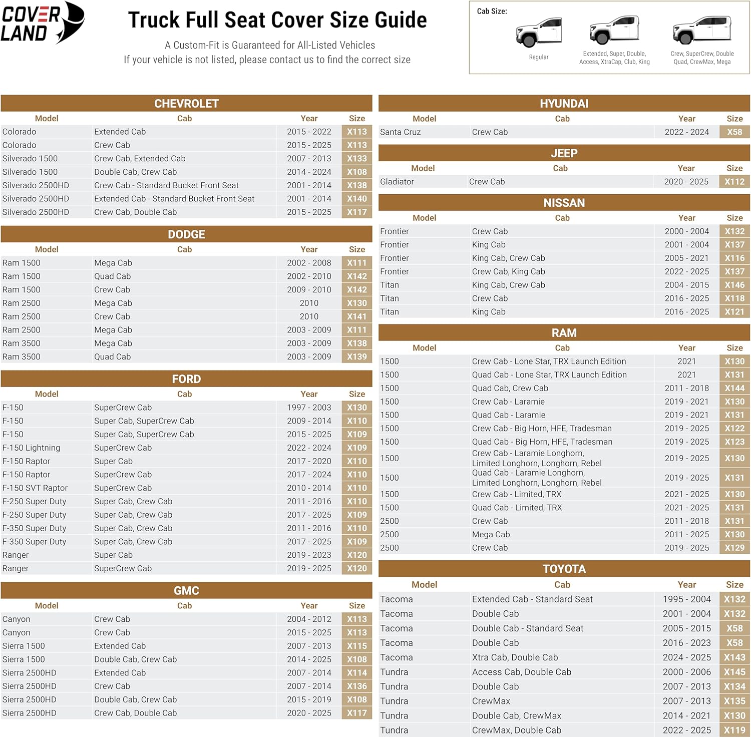 Coverland Custom Car Seat Covers Compatible with 2019-2025 RAM 1500 Quad Cab - Premium Leather Non-Slip Memory Foam Waterproof Cover Interior Protector Full Set-Dark Brown [See Size Chart-Size X123]