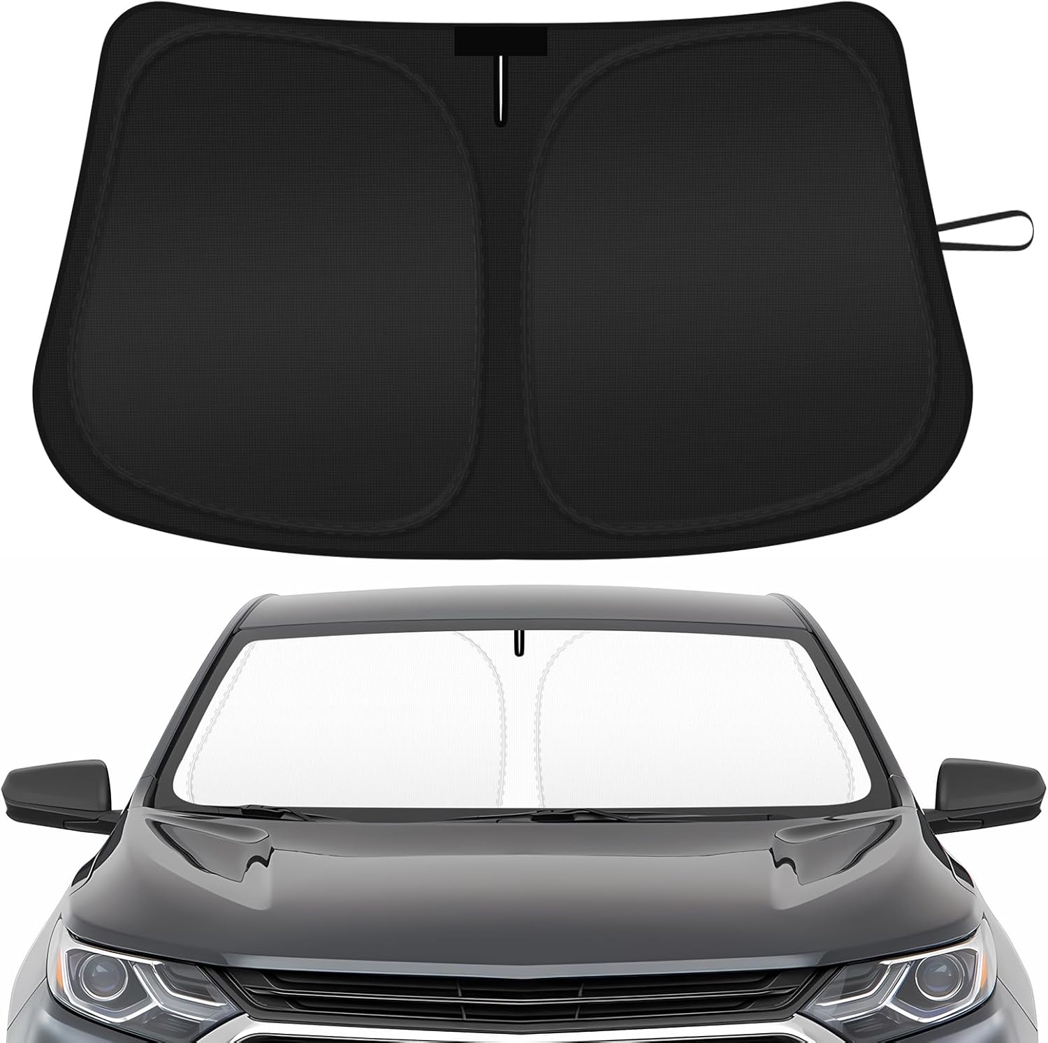 - 【Reflect Heat and Sun】The chevy equinox windshield sun shade are made of high-quality 210T reflective fabric material, for 2025 chevrolet equinox accessories windshield cover can effectively block 99% of ultraviolet rays and the heat of the sun. 0% light transmittance car window shades for front windshield can reduce the temperature difference of your Equinox.