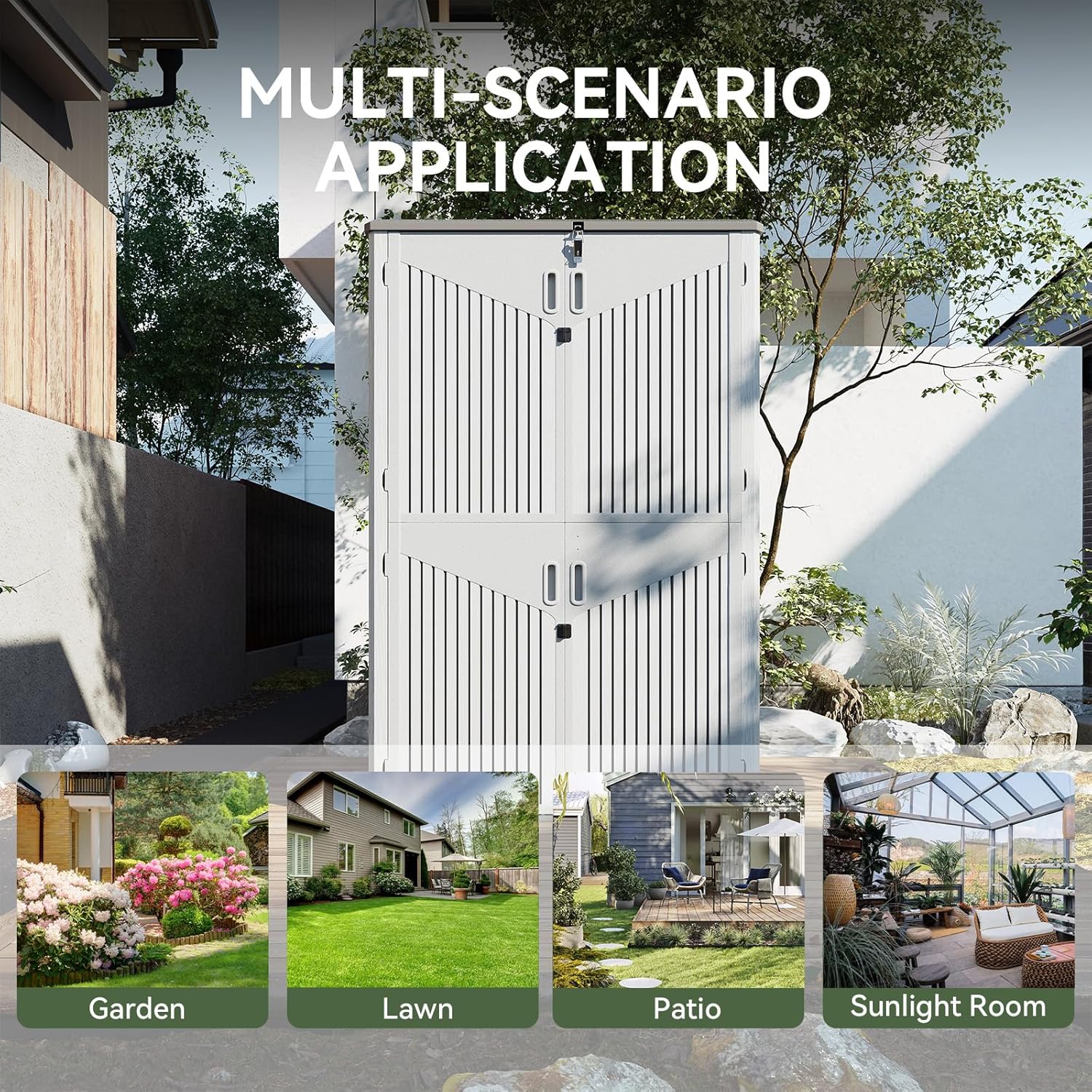 - 【Widened Anti-Toppling Base for Enhanced Stability】Designed with a widened bottom, this storage shed ensures superior stability, even on uneven ground. The top and bottom door suction system prevents accidental opening or closing, guaranteeing safety and durability during frequent use.