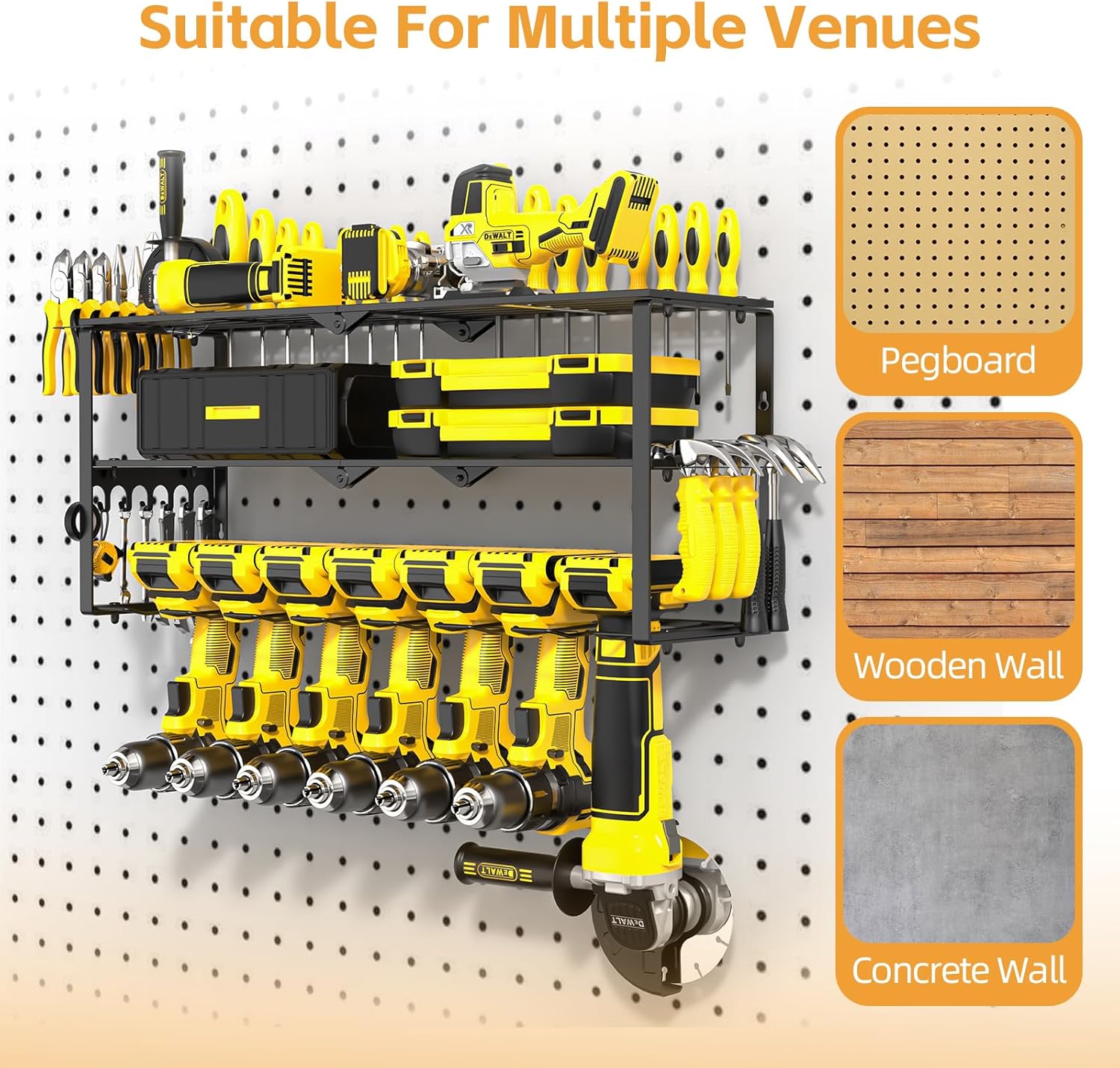Power Tool Organizer Wall Mount Cordless,15 Min Fast Install Metal Garage Tool Storage Organizer Heavy Duty 3 Layers 7 Drill Power Tool Holder Storage Rack Tool Shelf Wall Mount for Shop Organization