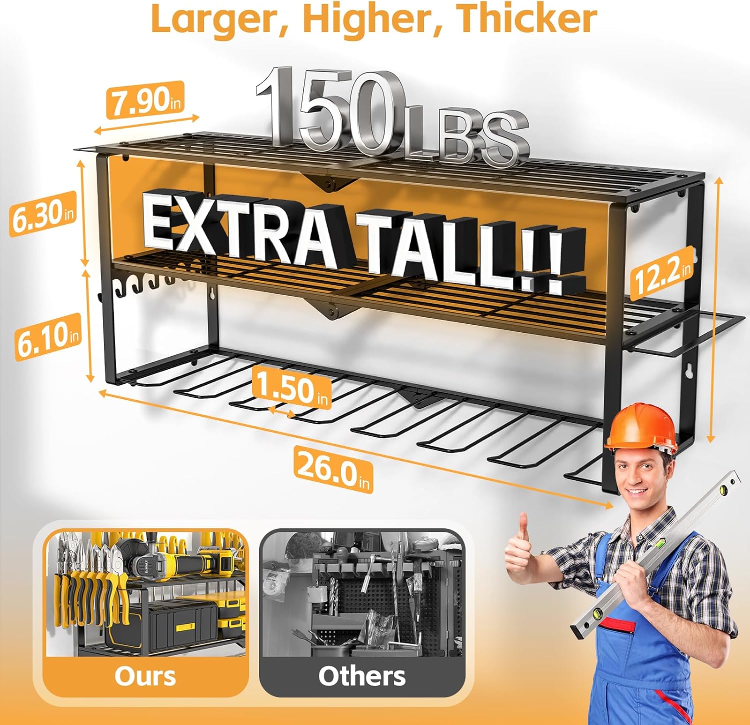 - 15 Mins Fast Installation: This power tool storage rack comes with 3 already assembled shelves and installation manual inside the package, making its easier and time saving to install.