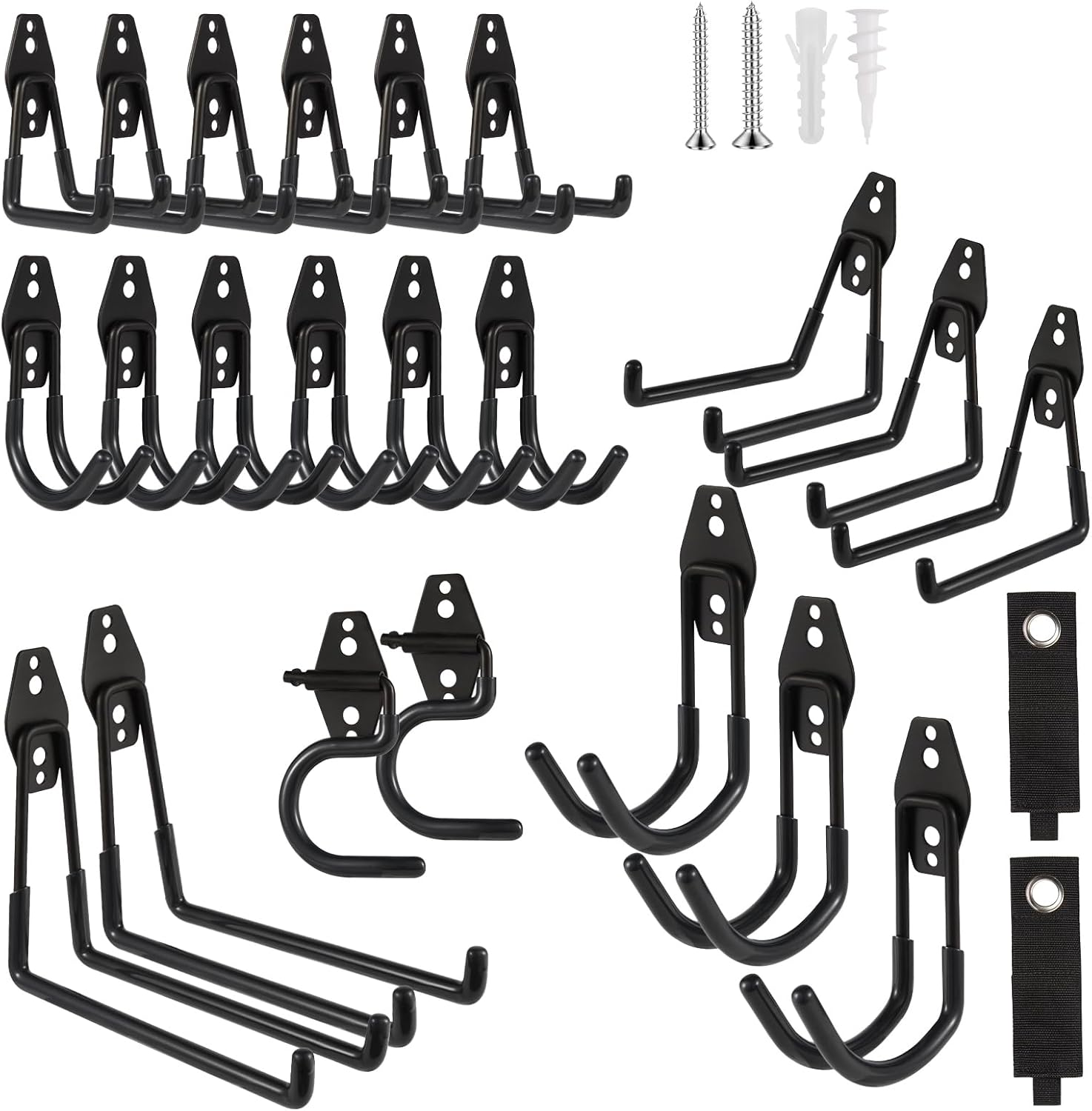 Garage Hook Heavy Duty Wall Storage Hangers, 24 Pack Garage Storage Hooks Steel Tool Black for Ladders, Ropes, Garden Tools