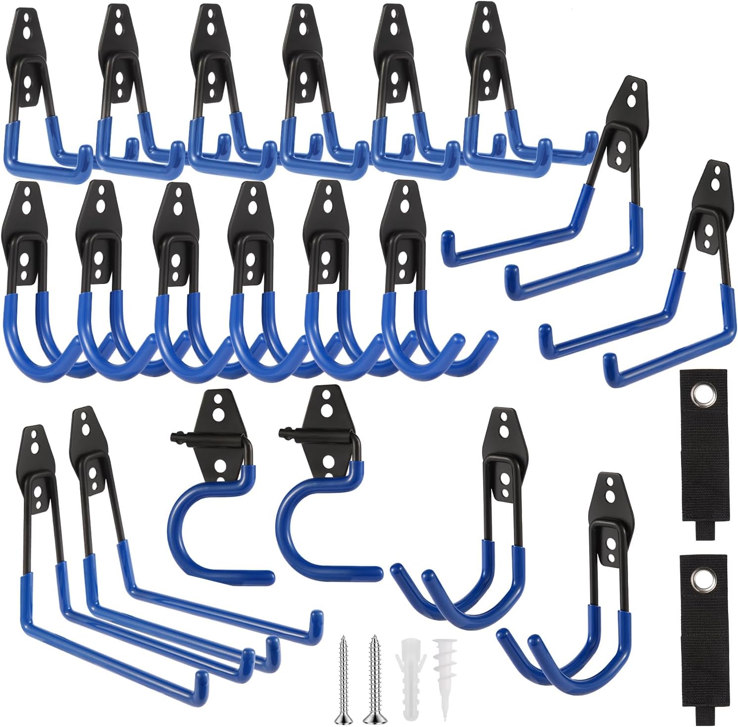 Garage Hook Heavy Duty Wall Storage Hangers, 22 Pack Garage Storage Hooks Steel Tool Blue for Ladders, Ropes, Garden Tools