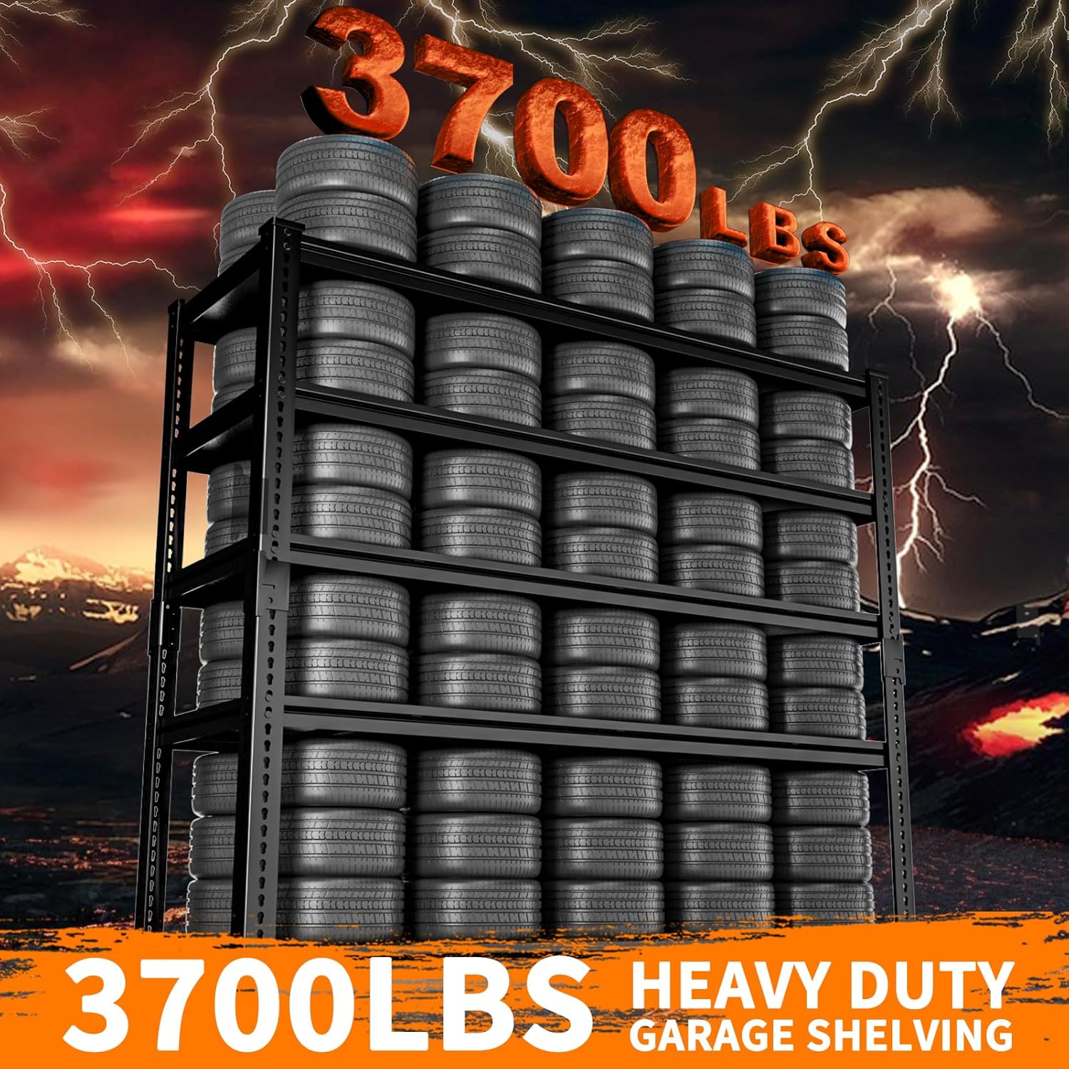 - 3700LBS Heavy Duty Storage Shelves: ROOMTEC heavy duty garage shelving unit is constructed from thickened heavy steel columns, each layer can withstand a weight of 740 pounds, with a total bearing capacity of 3700 pounds. Whether you're storing tools, equipment, or household supplies, these shelves is a reliable storage solution. The powder coat finish provides a smooth and attractive appearance but also resists water, rust, or corrosion, ensuring durability and longevity