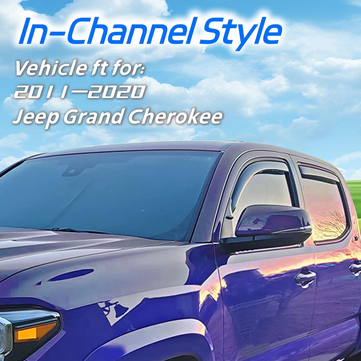 4PCS in-Channel Rain Guards for 2011-2020 Jeep Grand Cherokee, Durable Window Visors Side Wind Deflectors, Vent Shade Shield, 2011 2012 2013 2014 2015 2016 2017 2018 2019 2020