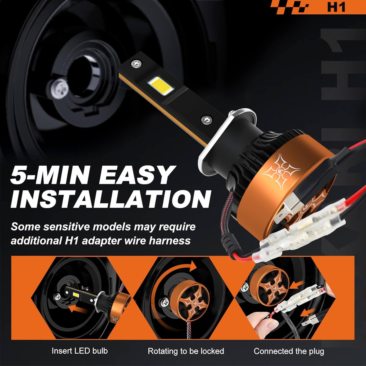 - Efficient Cooling & 50000 hrs Lifespan: Constructed with dual copper heat pipes, aerospace-grade aluminum, and a high-speed 15,000 RPM fan, these bulbs effectively reduce heat by 20-25%. With a lifespan of over 50,000 hours, they are built to perform consistently even in demanding conditions.