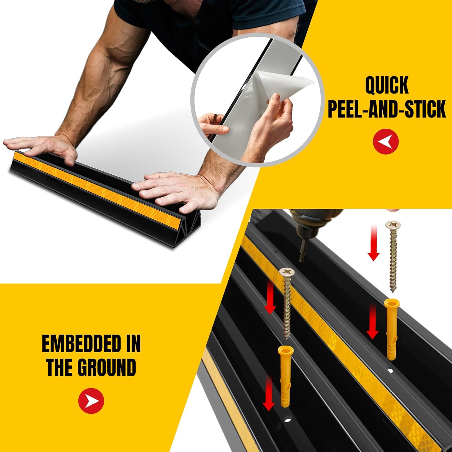 - 2 Mounting Options: The parking block can be installed in a peel-and-stick style or fixed by using the included screws into the pre-drilled holes. It effectively guides vehicle parking within your designated spaces for both temporary and long-term use