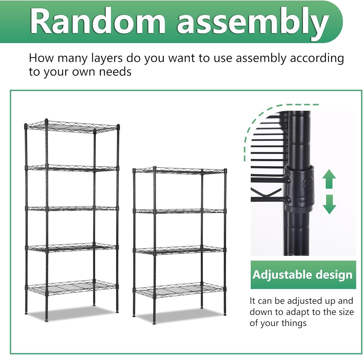 - Easy and Quick Assembly: With simple instructions and a user-friendly design, this wire shelving can be assembled quickly without the need for complicated tools. Spend less time setting up and more time organizing your space. Enjoy a hassle-free installation process with a sturdy and functional shelf in no time.