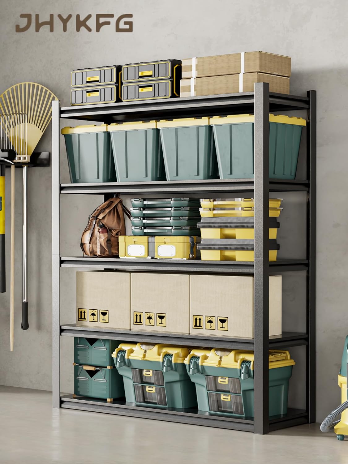 JHYKHG 63" H Storage Shelves,5-Tier Heavy Duty Garage Shelving,Adjustable Shelving Unit,Metal Shelf,Boltless Assembly Rack for Warehouse,Shed,2,500 lb Load,16 x 24 x 63 Inches,Black