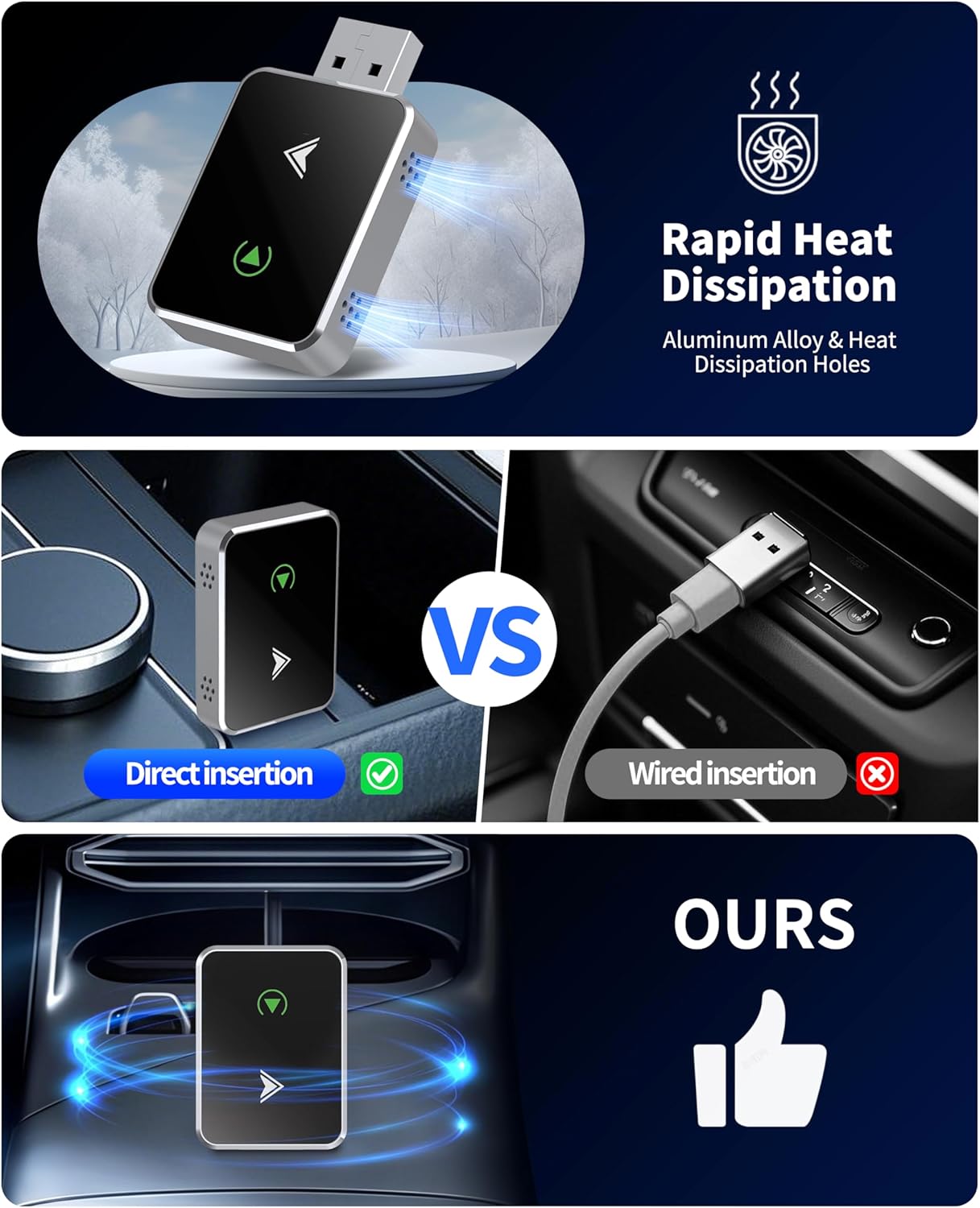 - 【Intelligent Experience】 The carplay adapter features 2025 upgraded intelligent IC chips and processors, delivering a powerful, rapid, and stable wireless connection while reducing interruptions and delays during use. All while 100% restore the pristine audio quality your car.