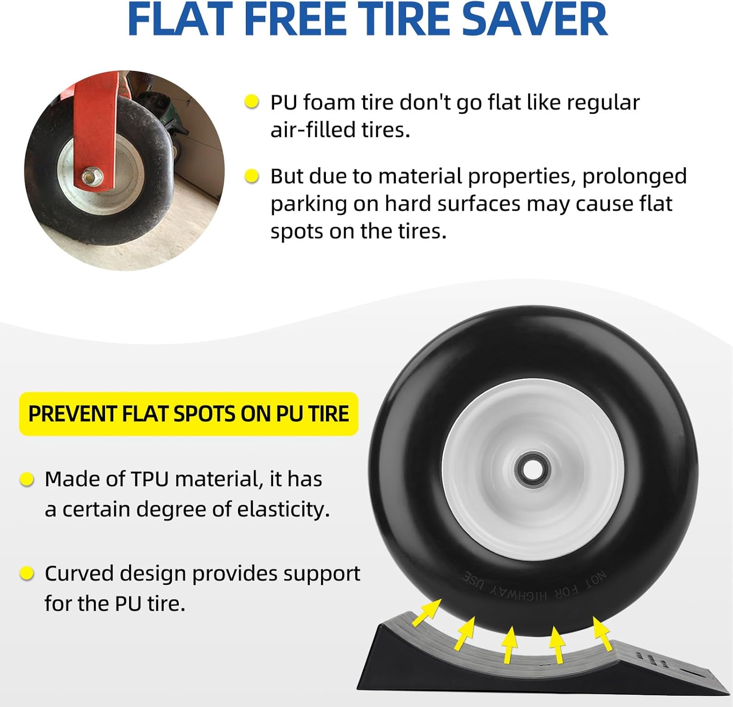 2-Pack Flat Free Tire Saver Ramp for 9-12" PU Foam Tire and Wheel, Non Flat Spots Saver Ramp, Suitable for Lawnmower, Wheelbarrow, and Trailer