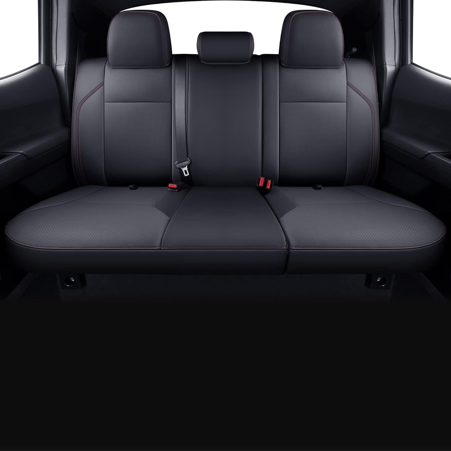 LUCKYMAN CLUB Tacoma Custom Fit Seat Covers for 2024 2025 Tacoma Crew Cab with Faux Leather (Black & Red)