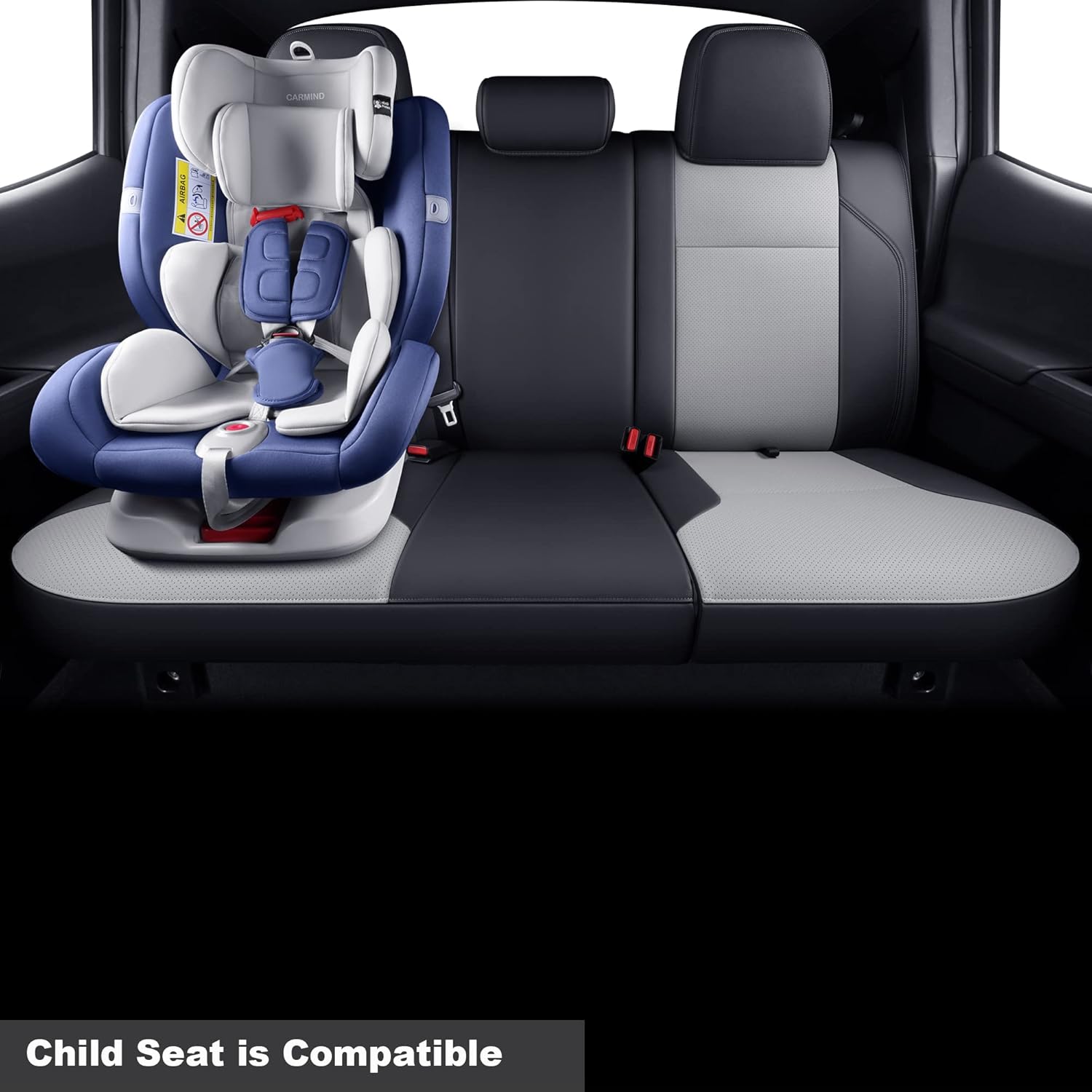 LUCKYMAN CLUB Tacoma Custom Fit Seat Covers for 2024 2025 Tacoma Crew Cab with Faux Leather (Black & Gray)