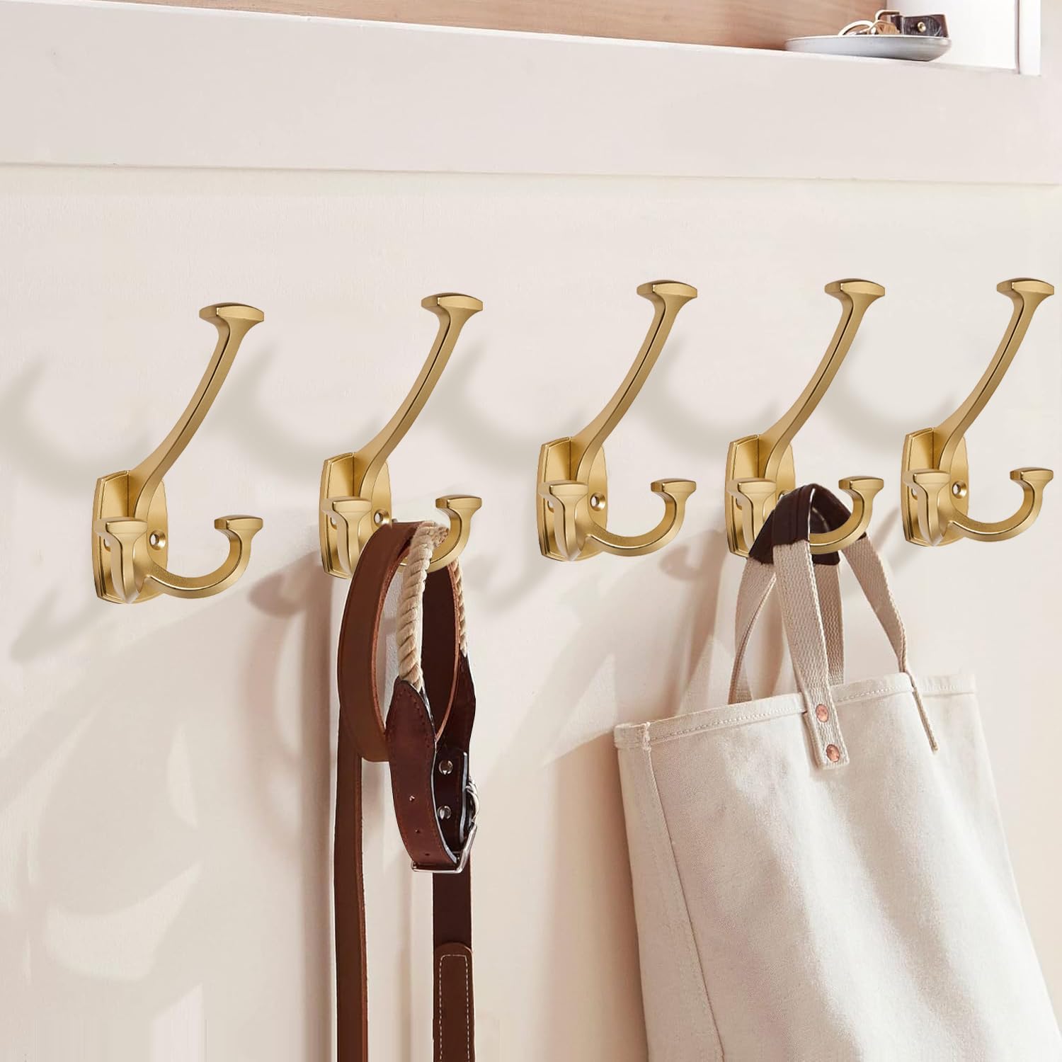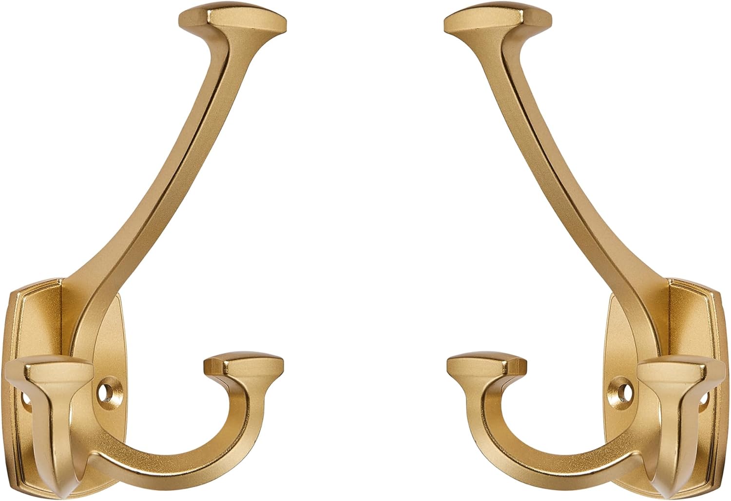 Large Wall Double-Sided Hook 5 Pack Gold Hook Decorative Heavy Duty Solid Large Coat Hooks for Towel Hanging Coats Robe Towel Bags Door Back 2 Prong Hooks