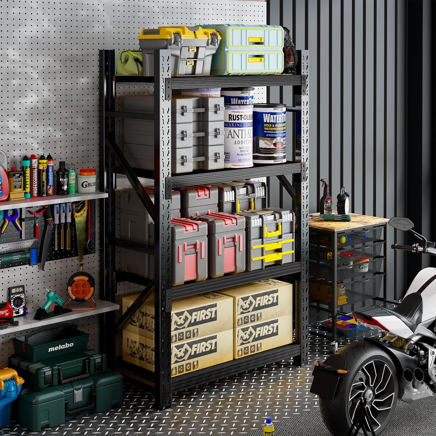 - 【Triple Reinforcement】Designed for heavy-duty storage needs, this rack features reinforced support beams, a triangular structure, and secure reinforcement buckles, ensuring exceptional stability and durability. Perfect for storing power tools, paint cans, large bins, gardening supplies, and automotive parts, keeping your space organized and clutter-free.