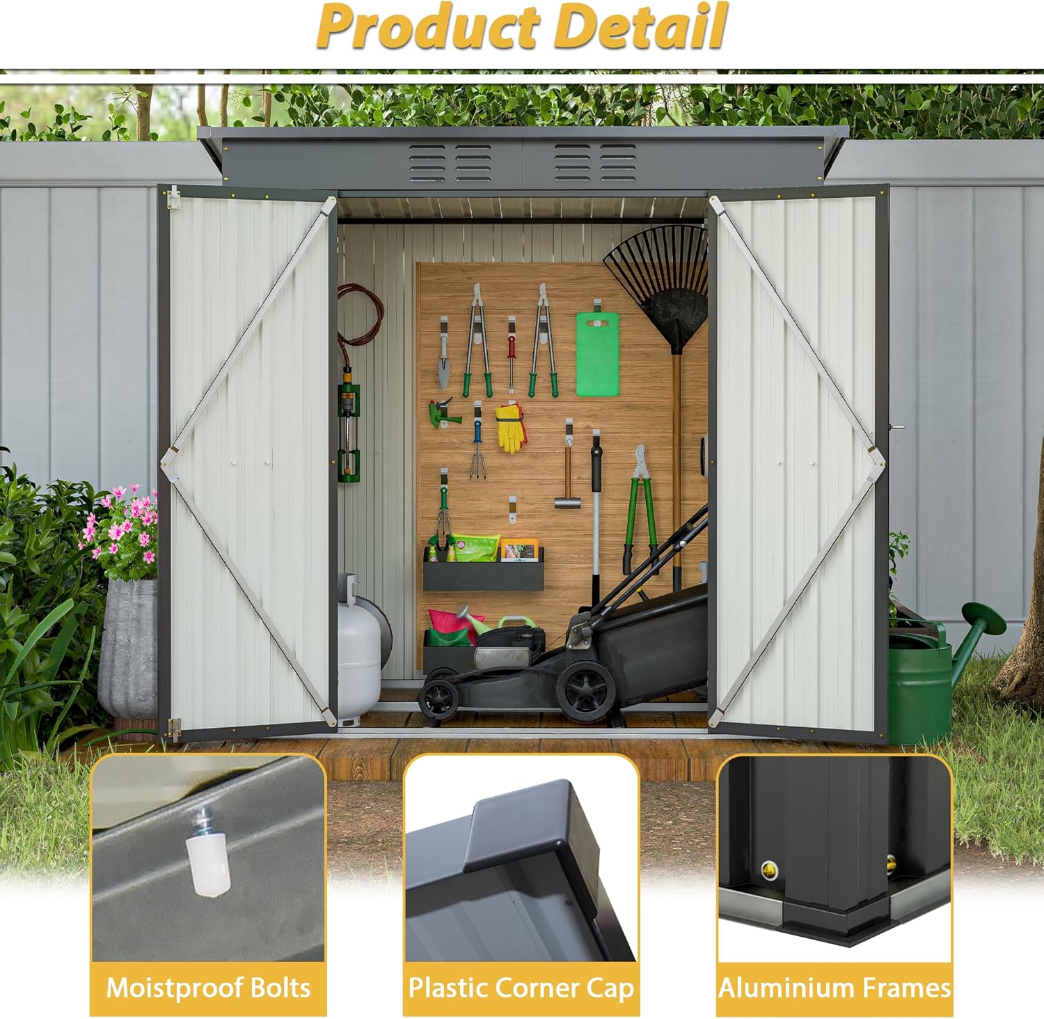 - 【Reinforced Steel Construction】 Built with galvanized steel panels and aluminum frame reinforcements, this storage shed offers exceptional strength, rust resistance, and stability that lasts over 10 years in all weather conditions.