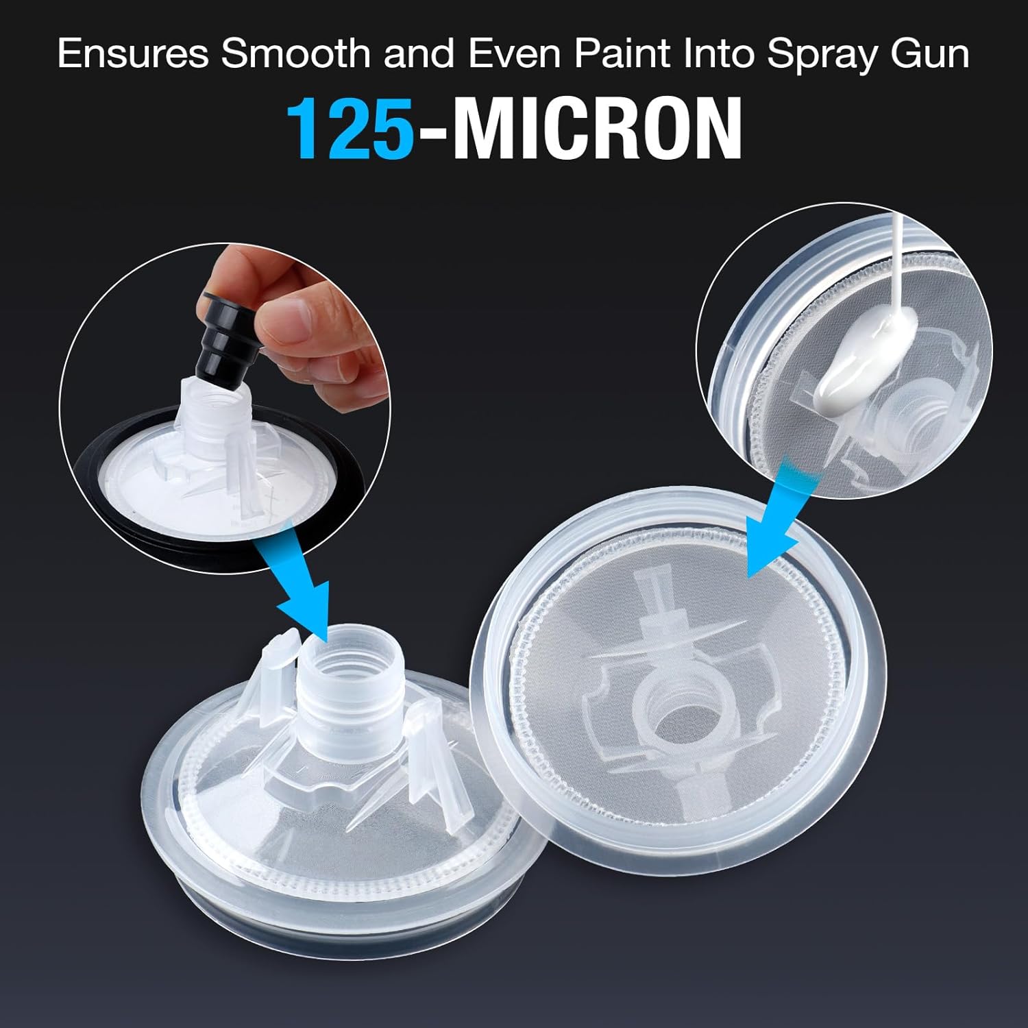 - Fine Filtration for Smooth Finishes: Lid features built-in 125-micron filters compared with the 190-micron filter screen, it can prevent any particles from entering the paint surface, making the paint coating more uniform and smooth, and enhancing the overall aesthetic appearance of the sprayed object.
