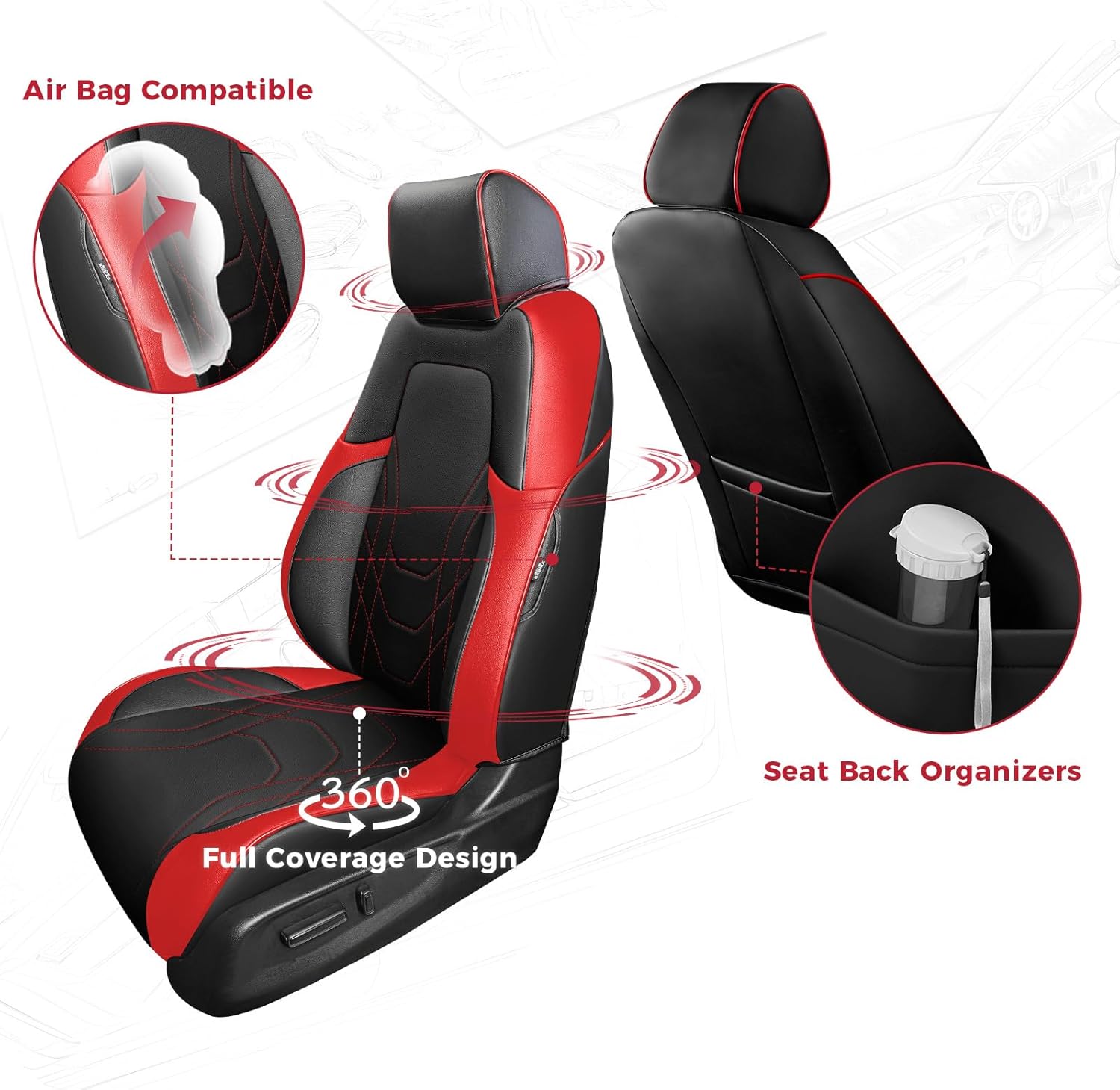 - 【All-Day Comfort for Drive】: Breathable, ultra-soft and skin-friendly leather with high-elastic sponge padded automotive seat covers full set to make your journey more comfortable.