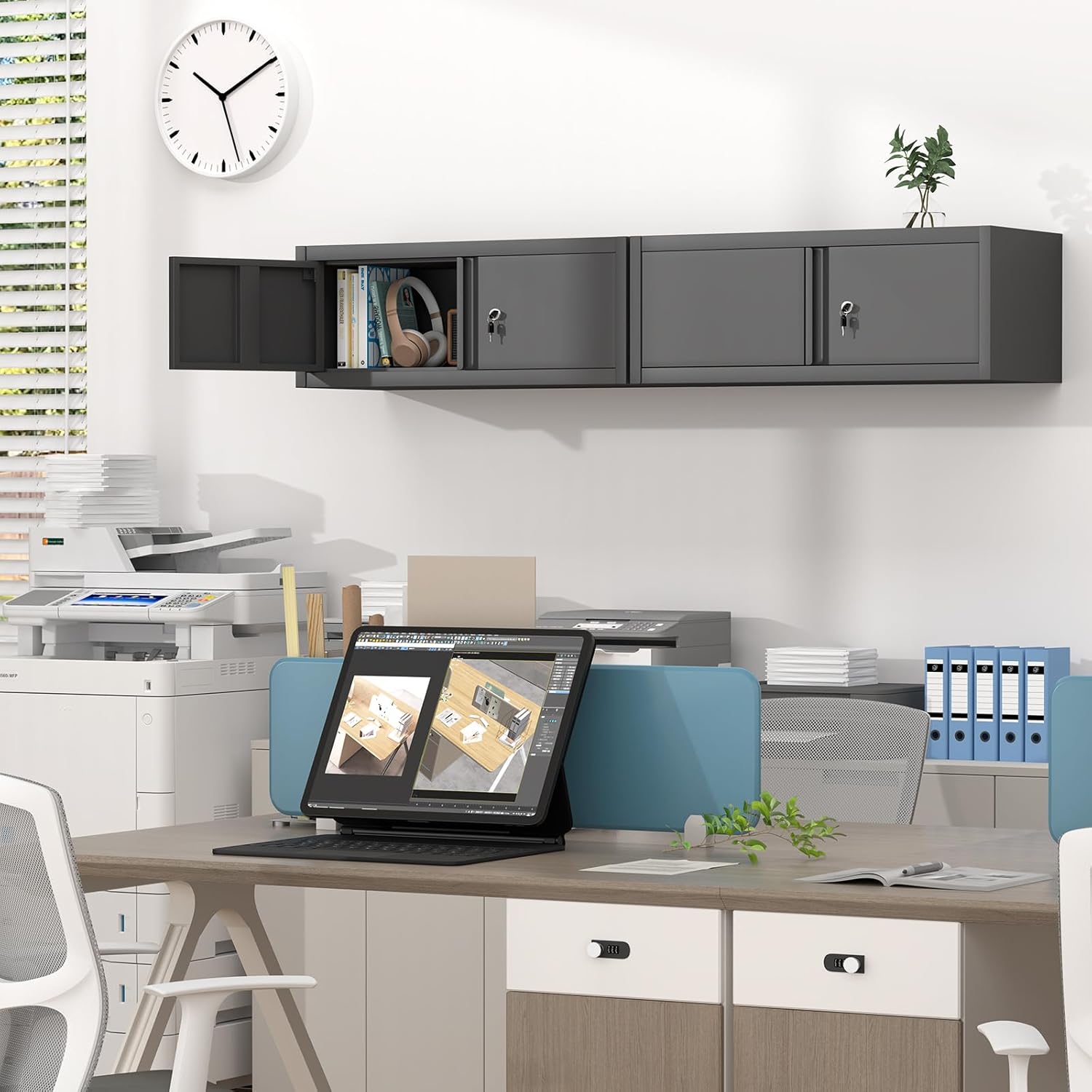 GREATMEET Metal Garage Storage Cabinets, Lockable Storage Cabinet with Doors, Wall Mount Cabinet Storage with Lock, Hanging Floating (Black, 13" H)