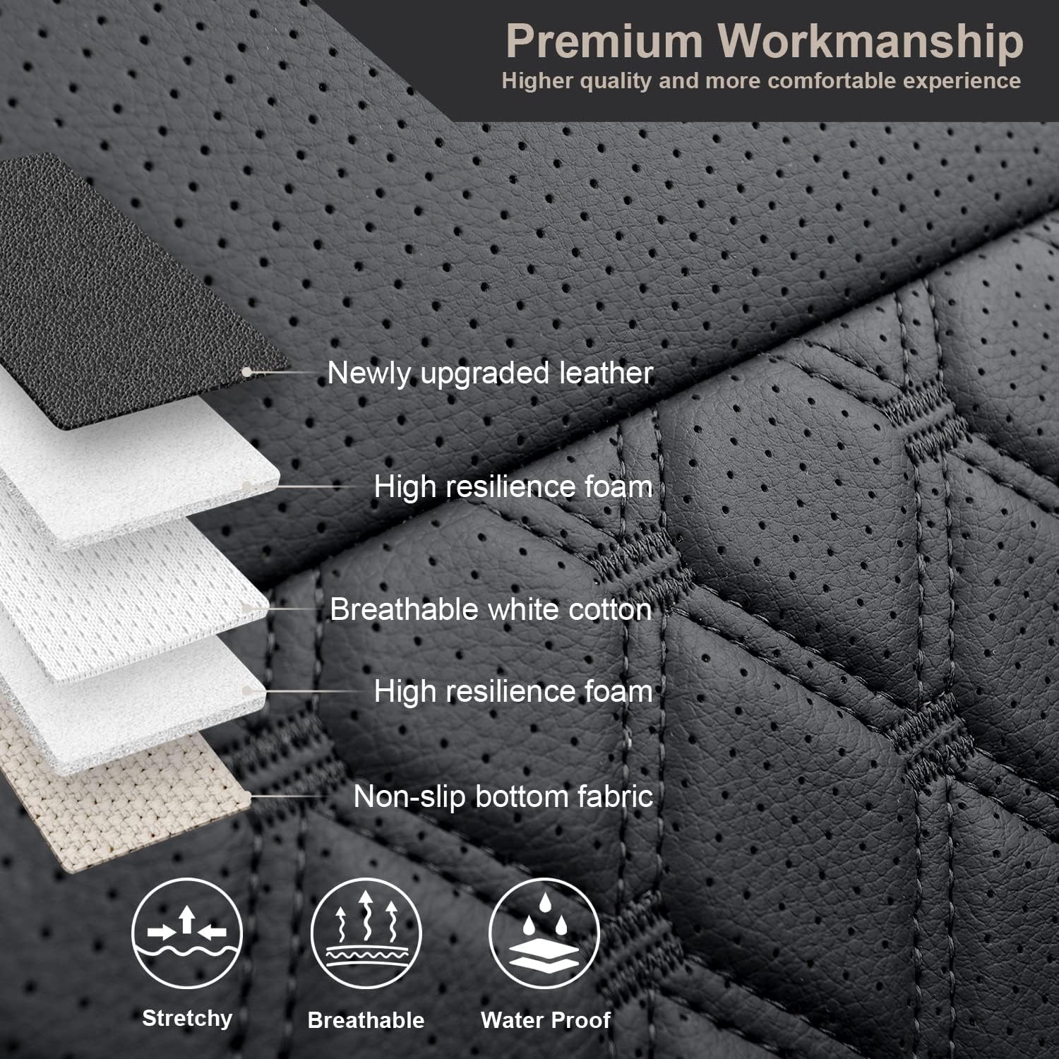 - These car seat covers are made of soft leatherette, which is comfortable to touch, breathable, durable and easy to clean. The perforated leather in the cushion part is compatible with the heating and cooling functions of the original seat.
