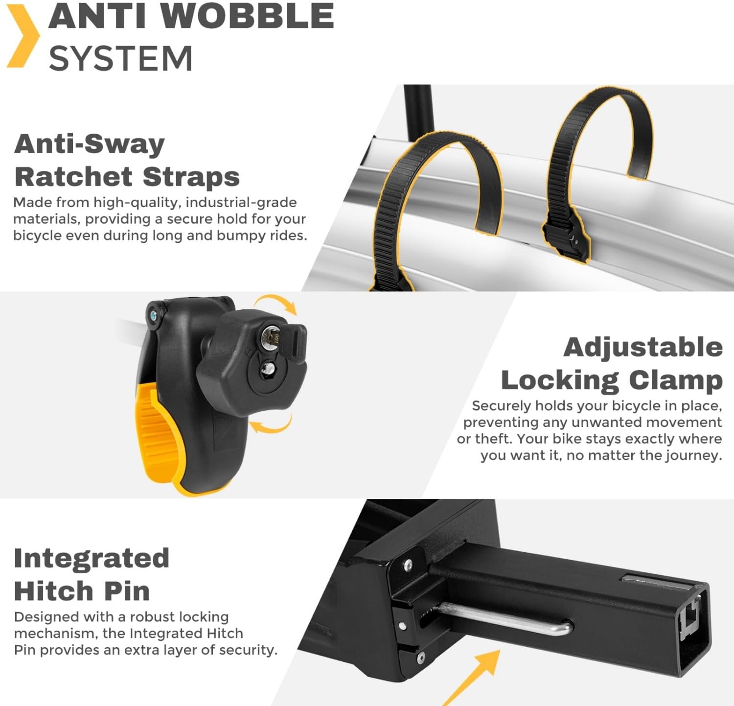 - Universal Compatibility – Fits most 2-inch hitch receivers and works with electric, mountain, and fat-tire bikes (up to 5" tires).
