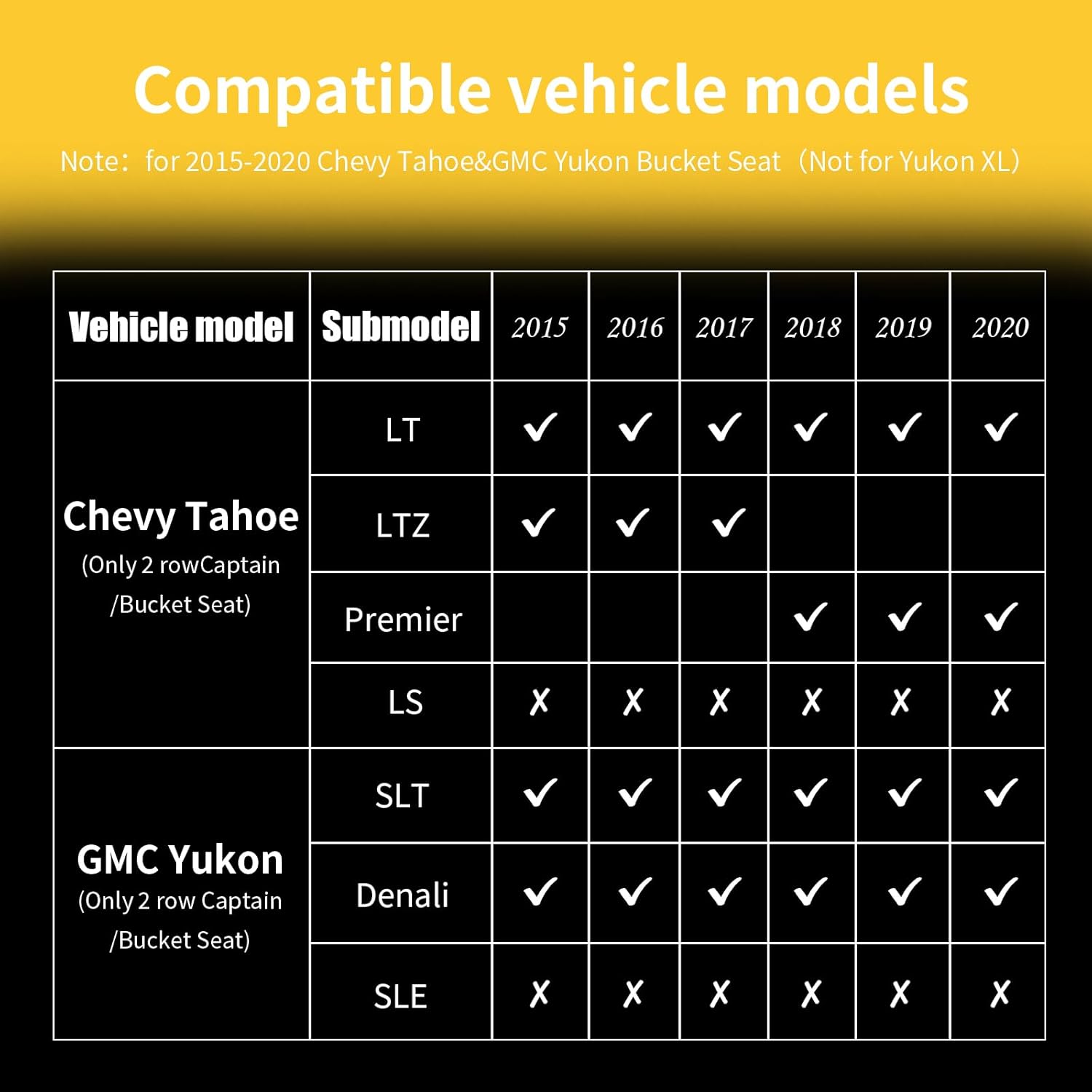 - 【Custom Fit】: For Tahoe & Yukon 2015-2020 with 2nd Row Bucket Seats