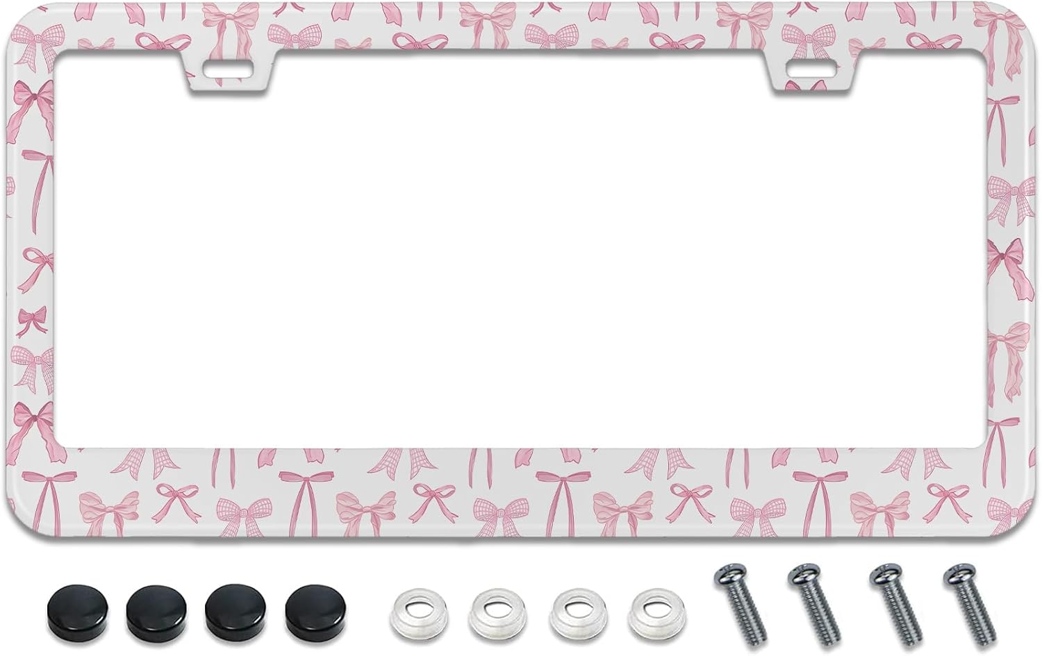 License Plate Frame for Pink Bow Stainless Steel License Plate Frames Holder Covers Rust-Proof Auto Parts Decoration with Screws License Plate Holder for Car Accessories 12x6 Inch